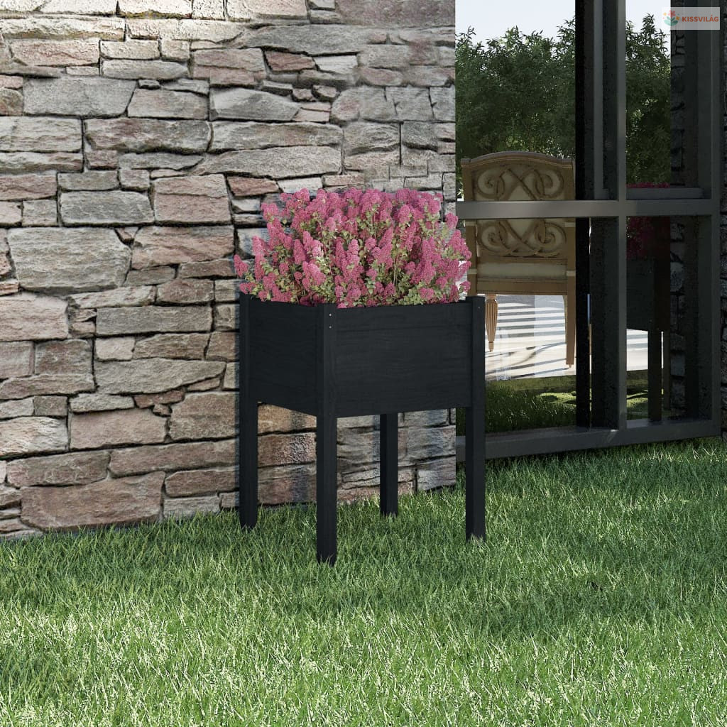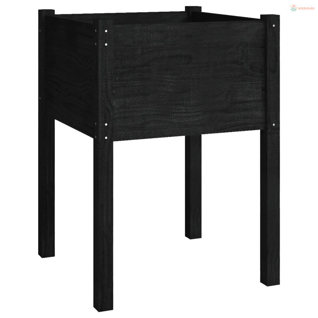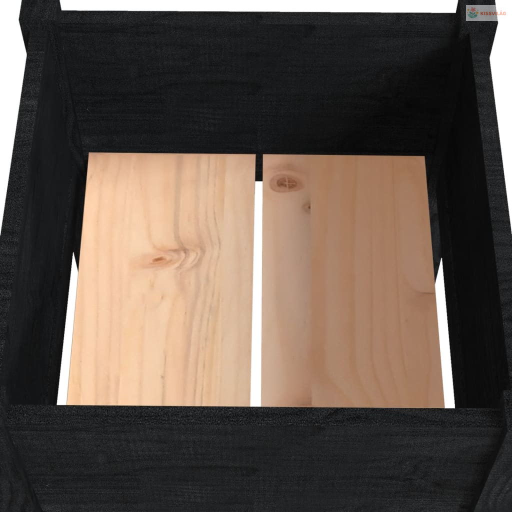 Fekete tömör fenyőfa kerti virágtartó 50 x 50 x 70 cm