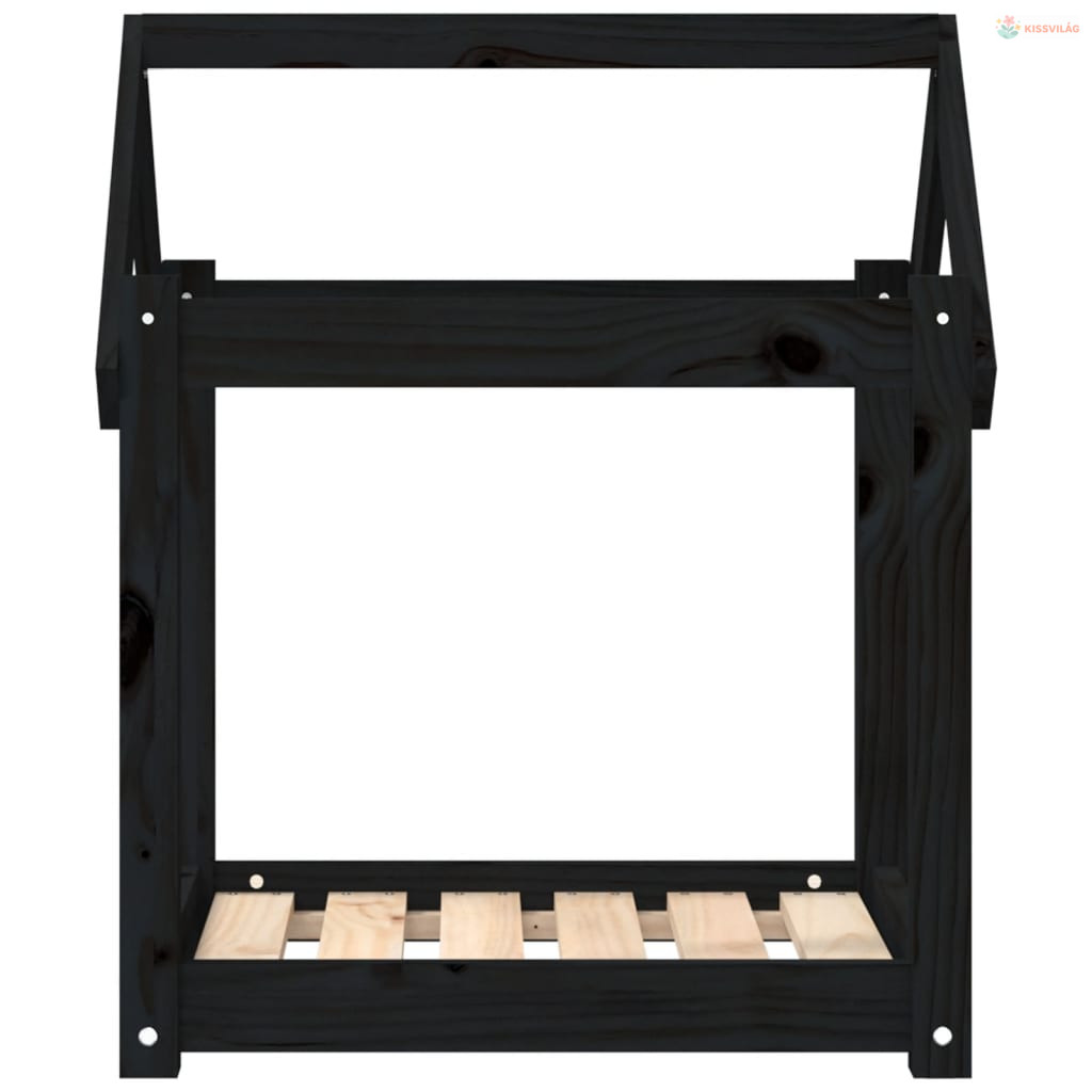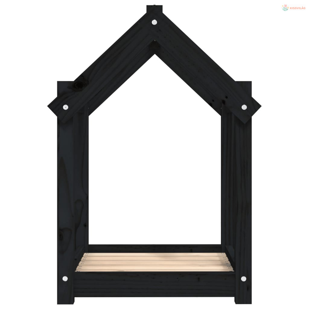 Fekete tömör fenyőfa kutyaágy 61x50x70 cm