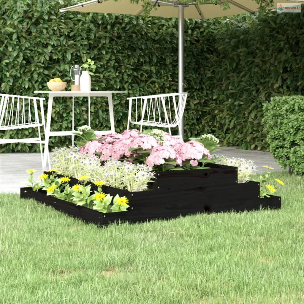 Fekete tömör fenyőfa növénytartó 110x110x27 cm