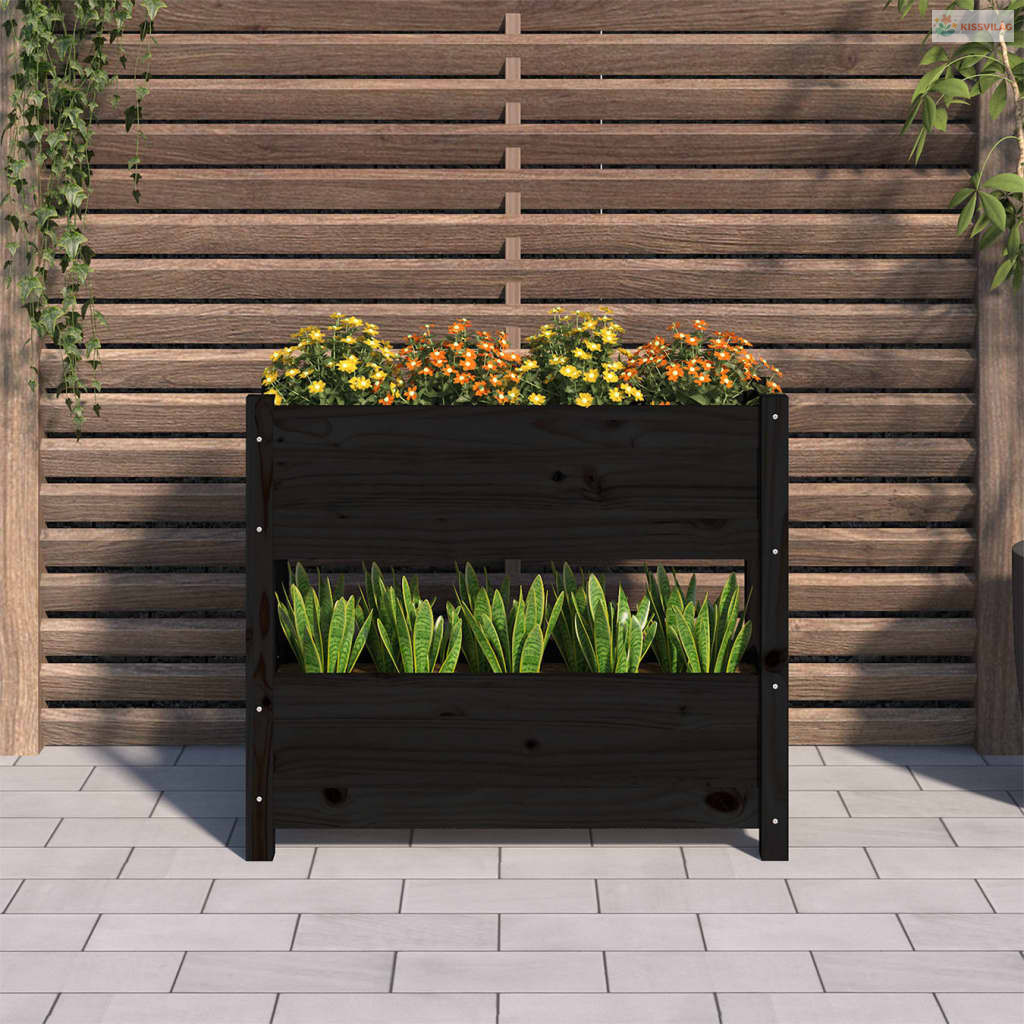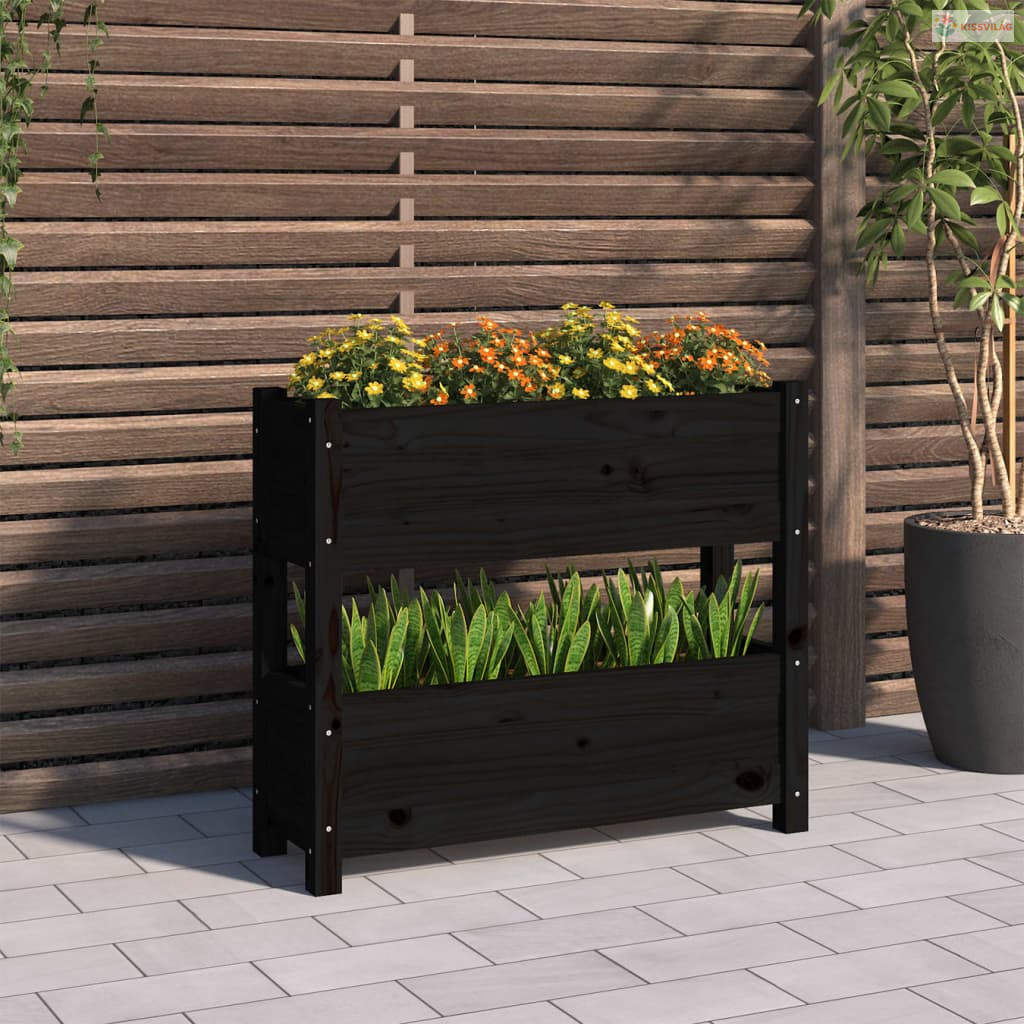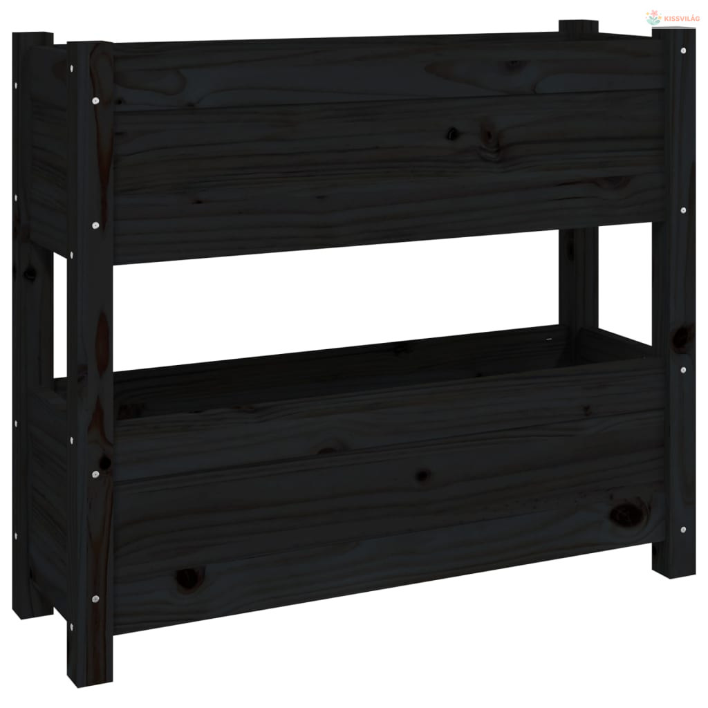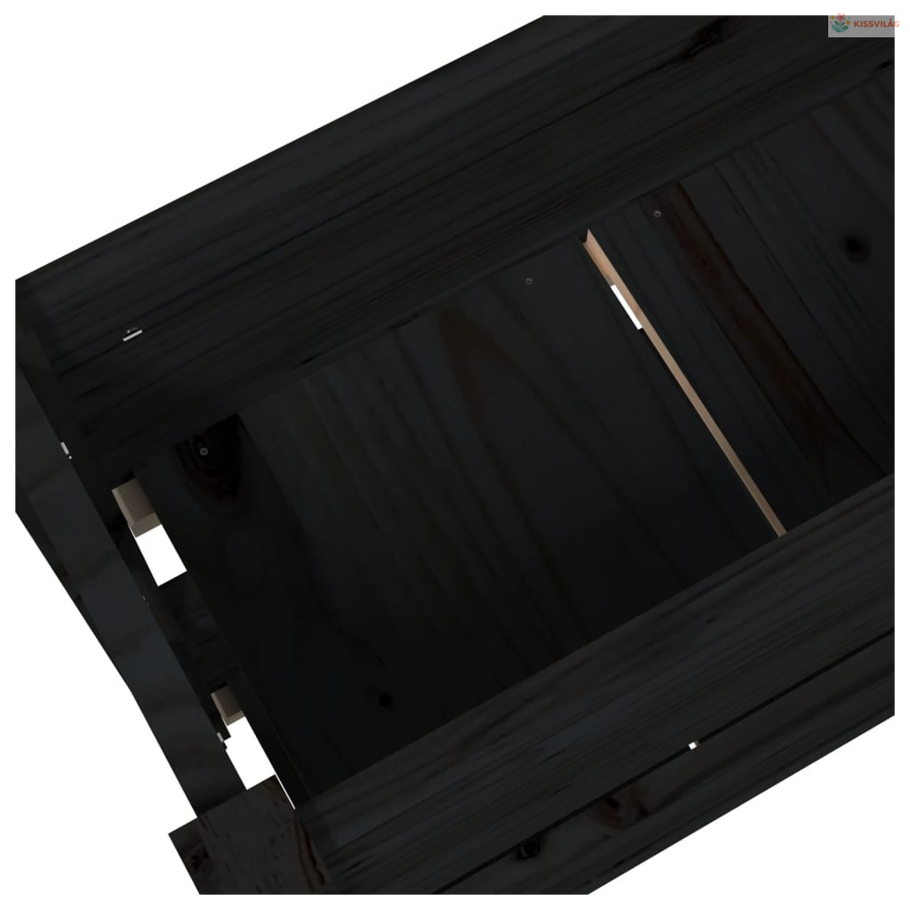 Fekete tömör fenyőfa növénytartó 77x25x66 cm