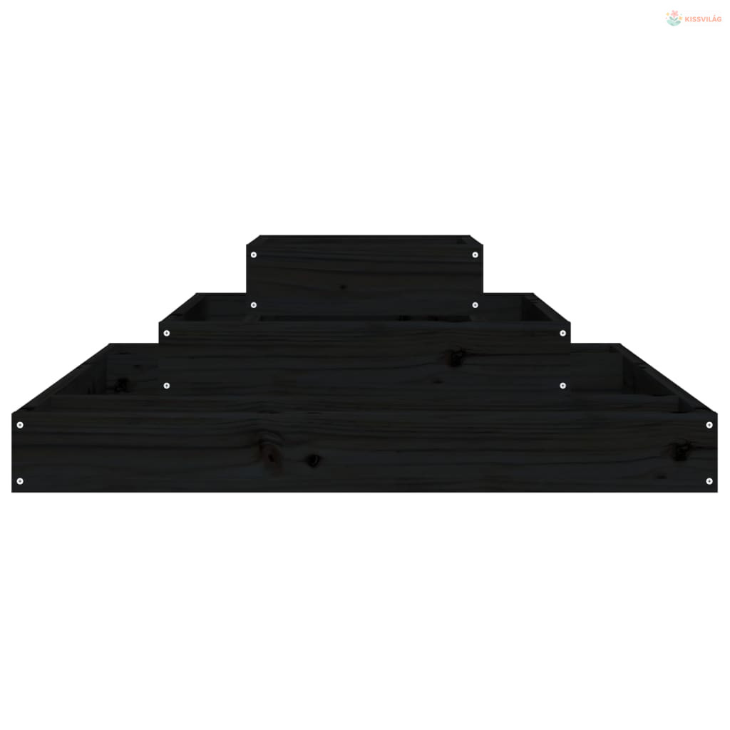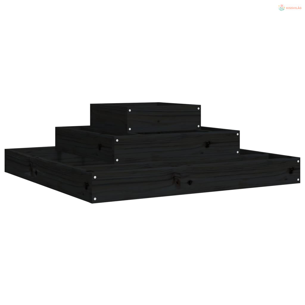 Fekete tömör fenyőfa növénytartó 80x80x27 cm