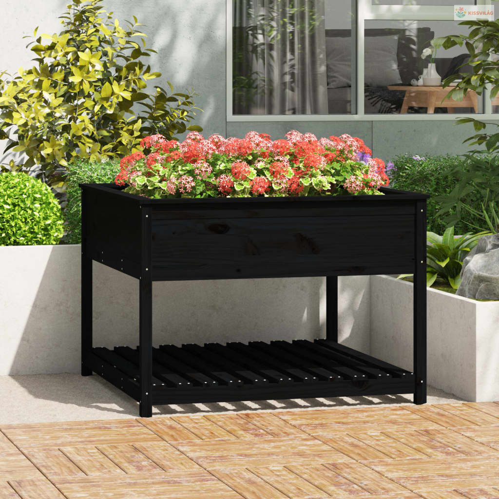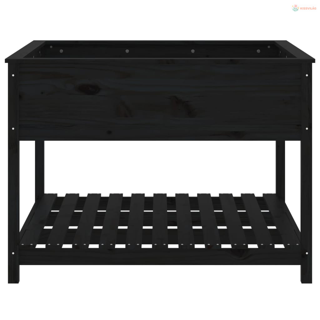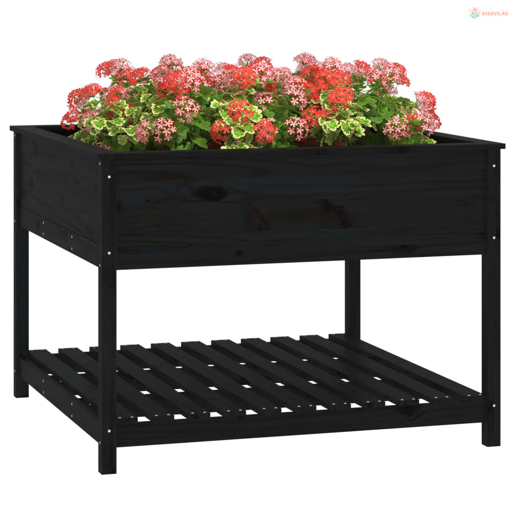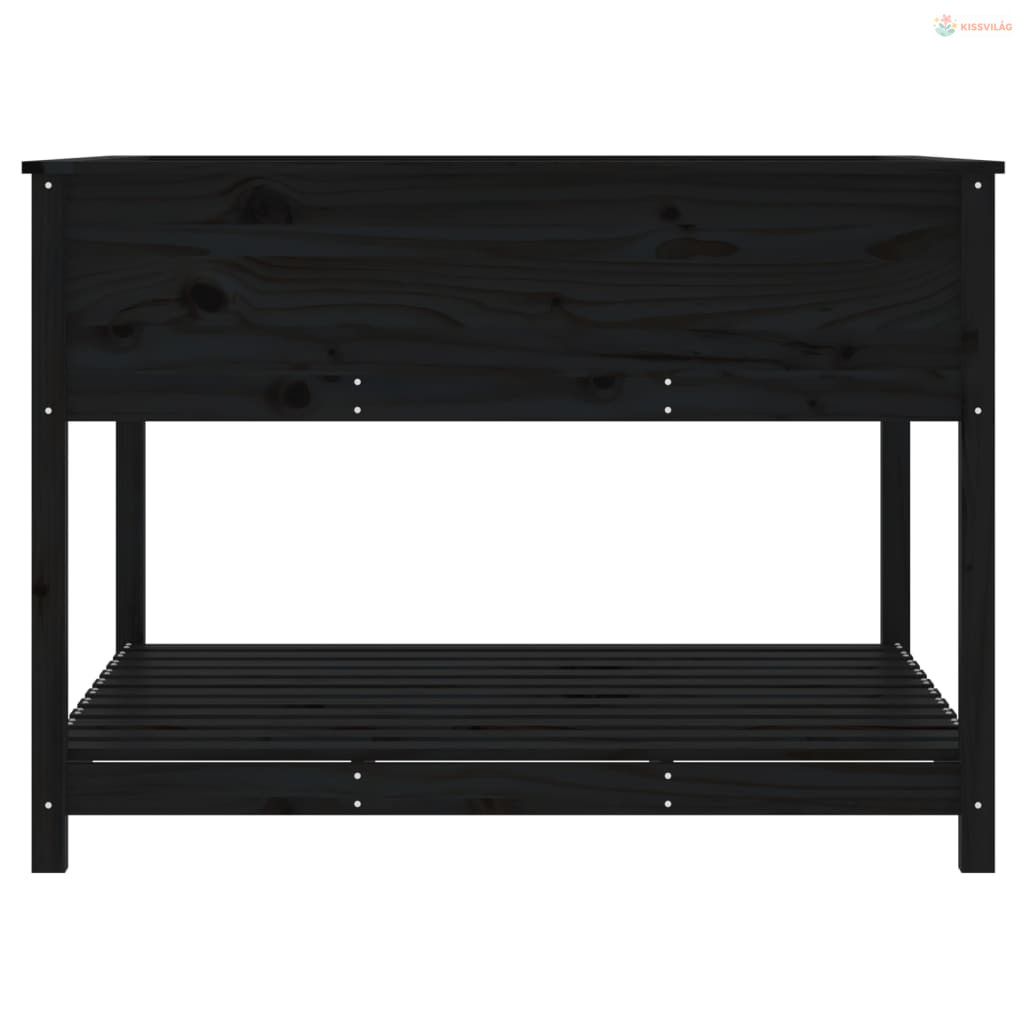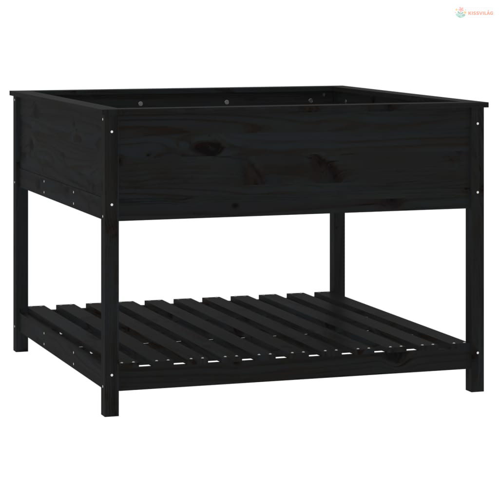 Fekete tömör fenyőfa növénytartó polccal 111,5x111,5x81 cm