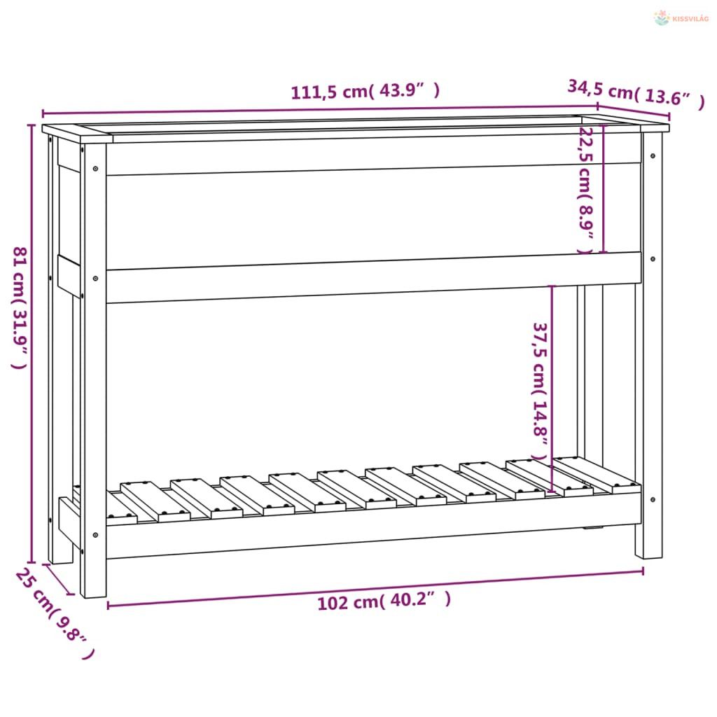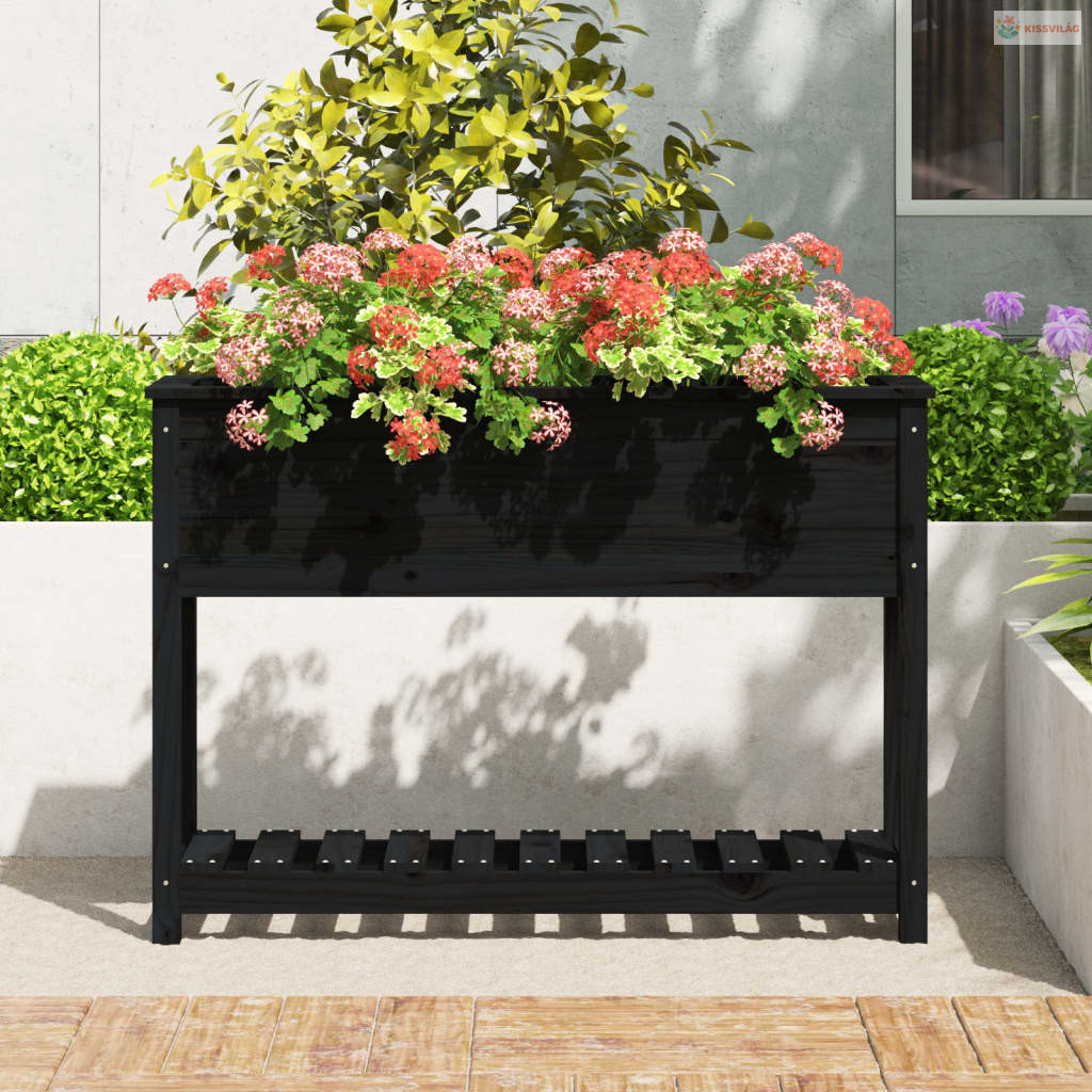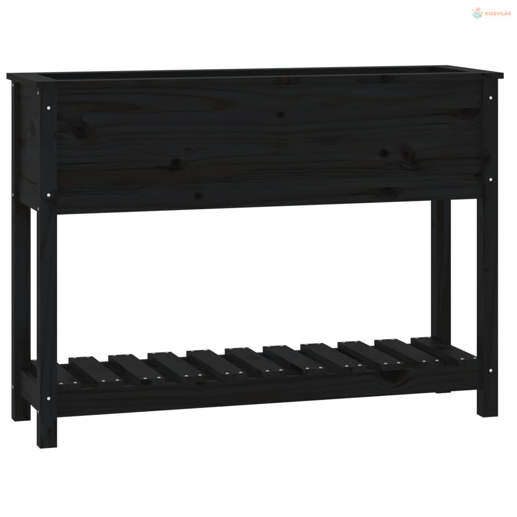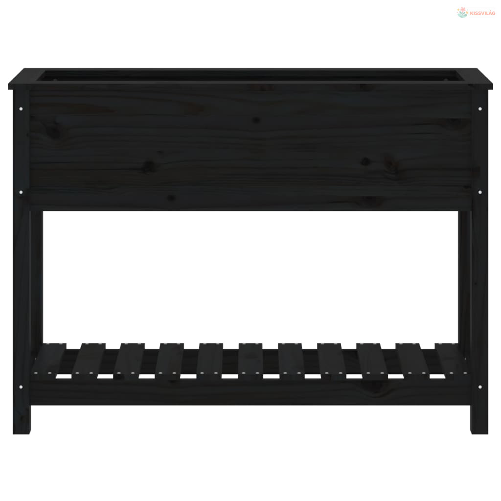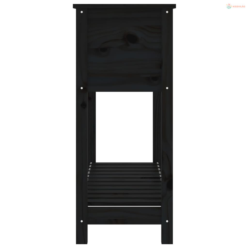 Fekete tömör fenyőfa növénytartó polccal 111,5x34,5x81 cm
