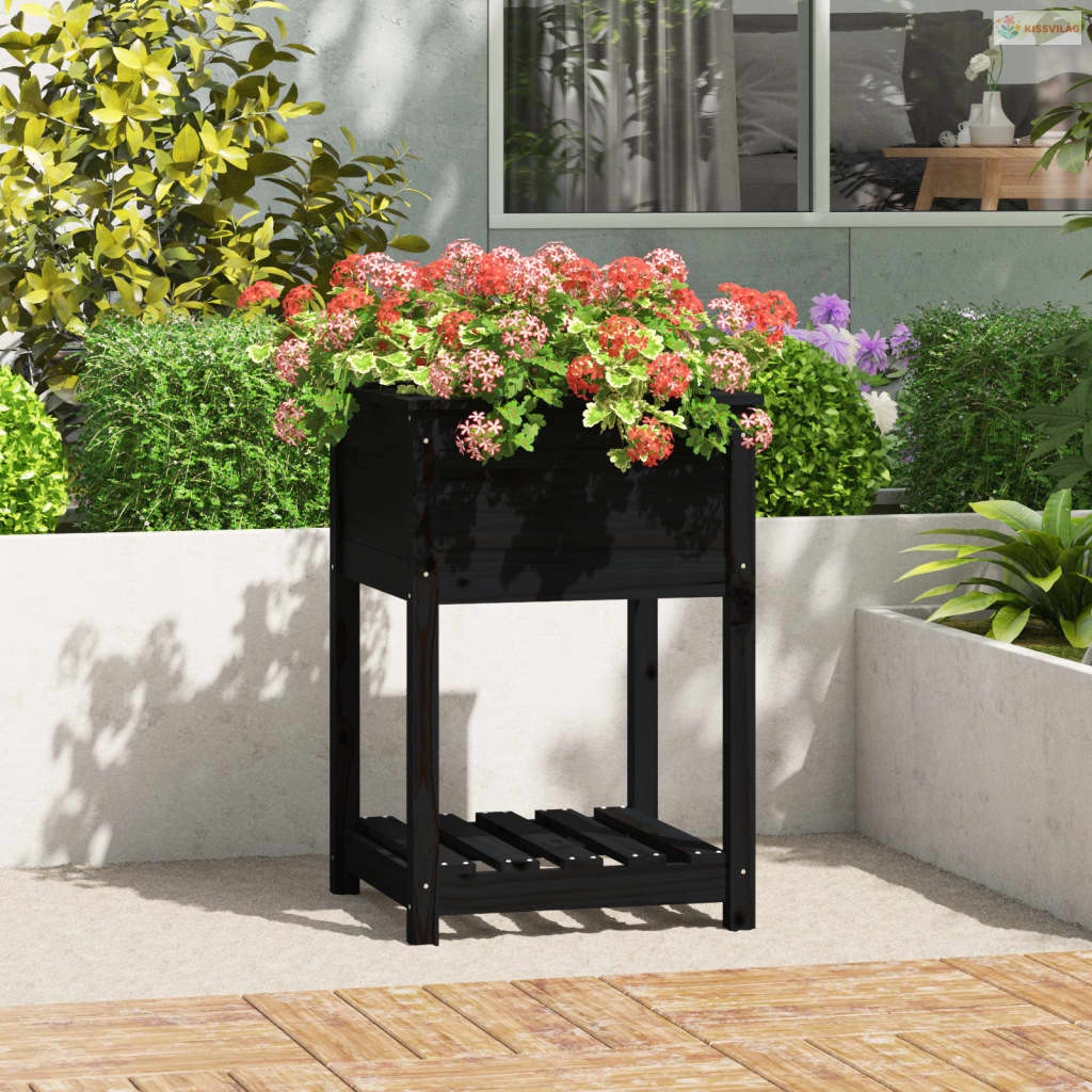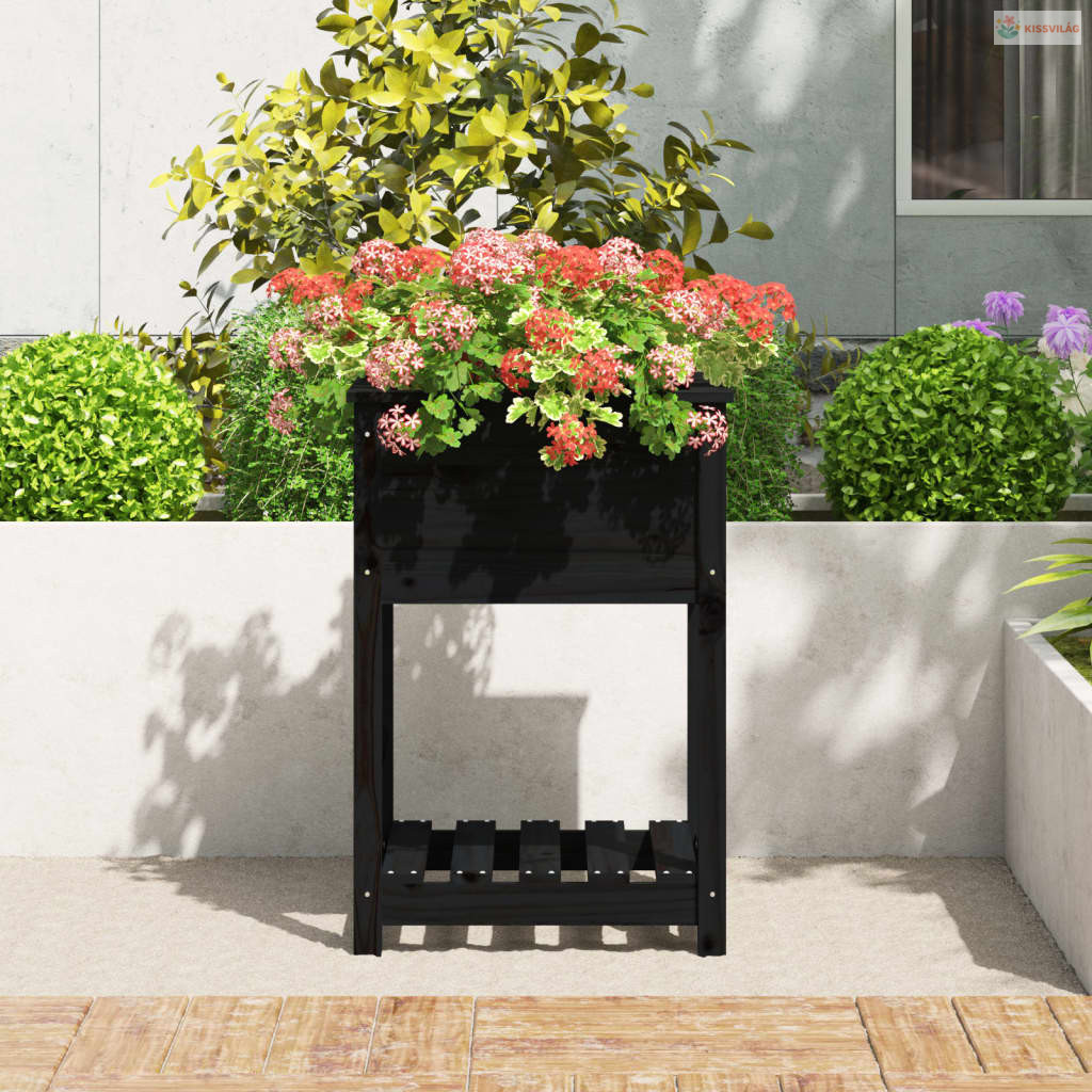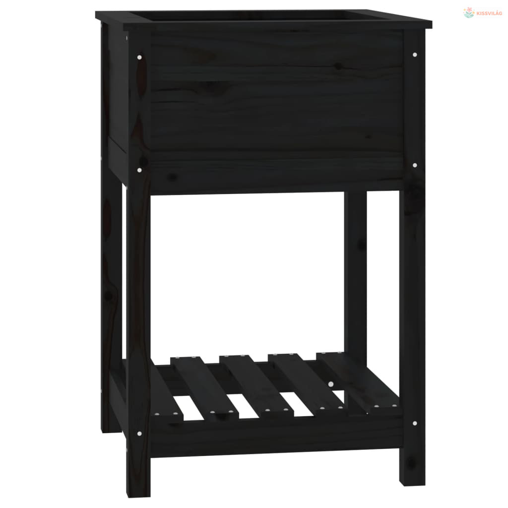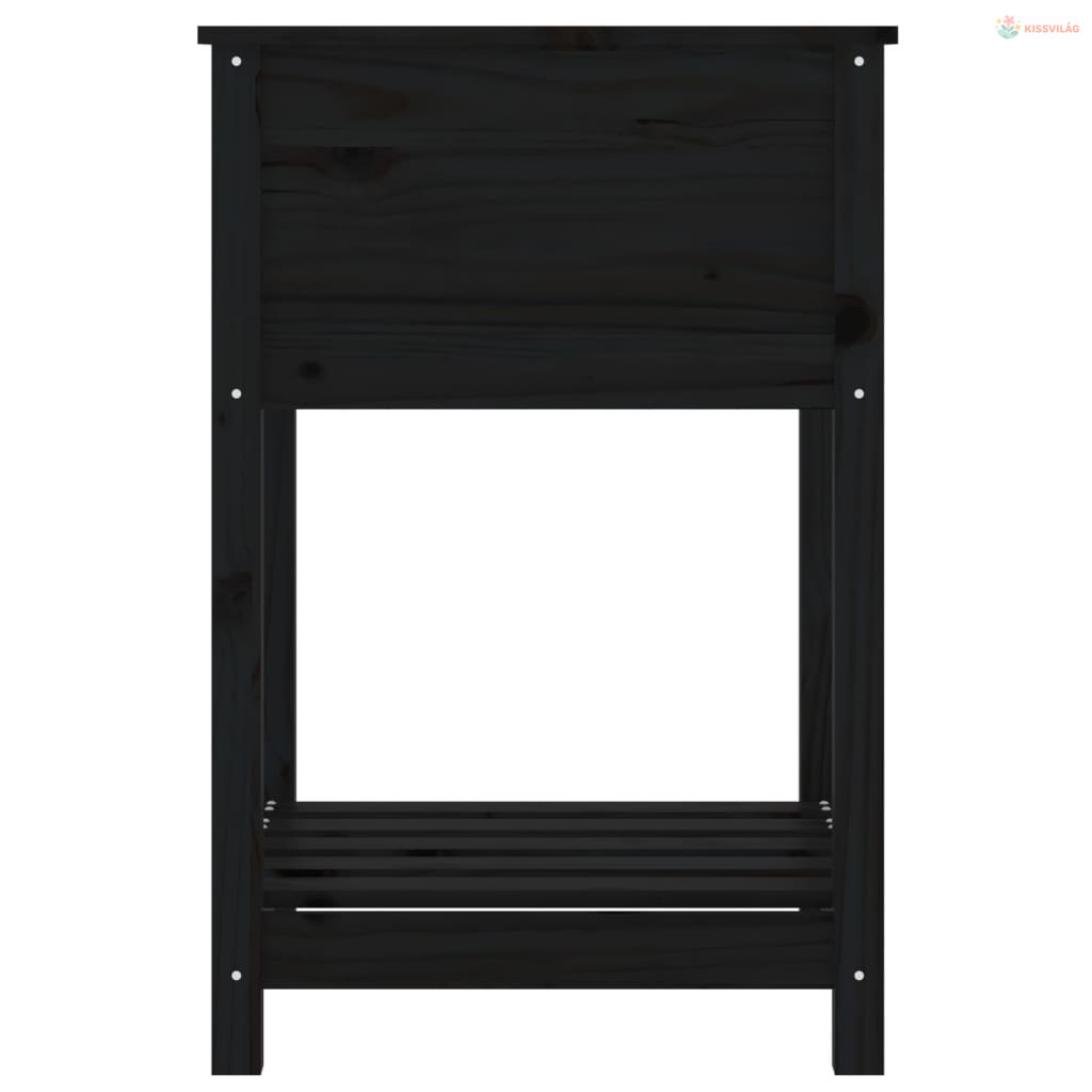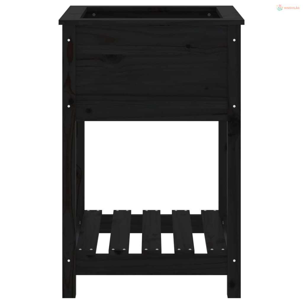 Fekete tömör fenyőfa növénytartó polccal 54x54x81 cm
