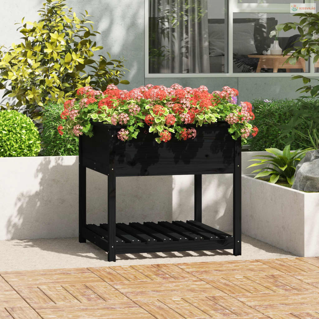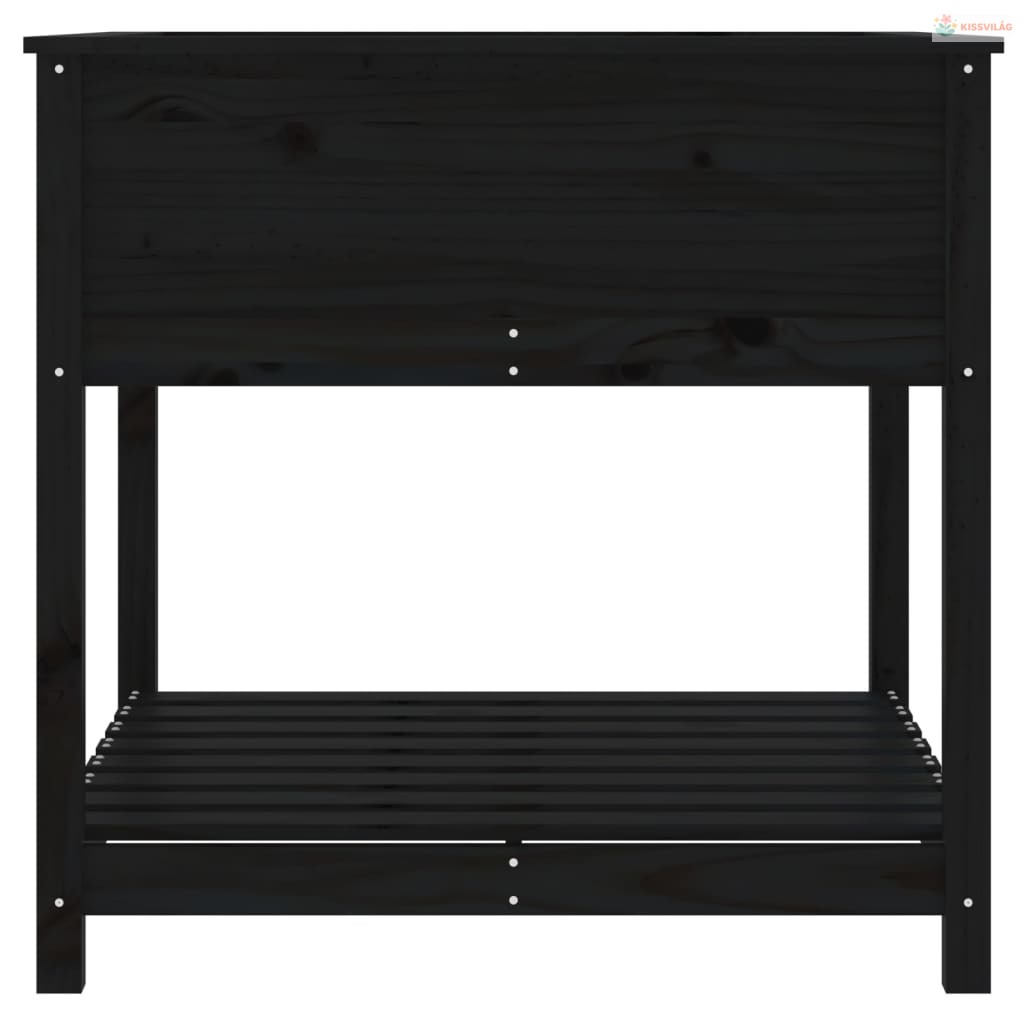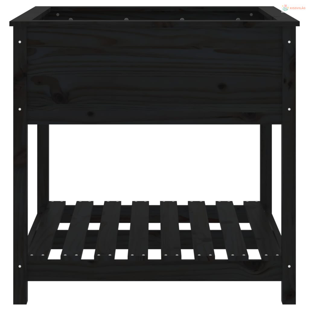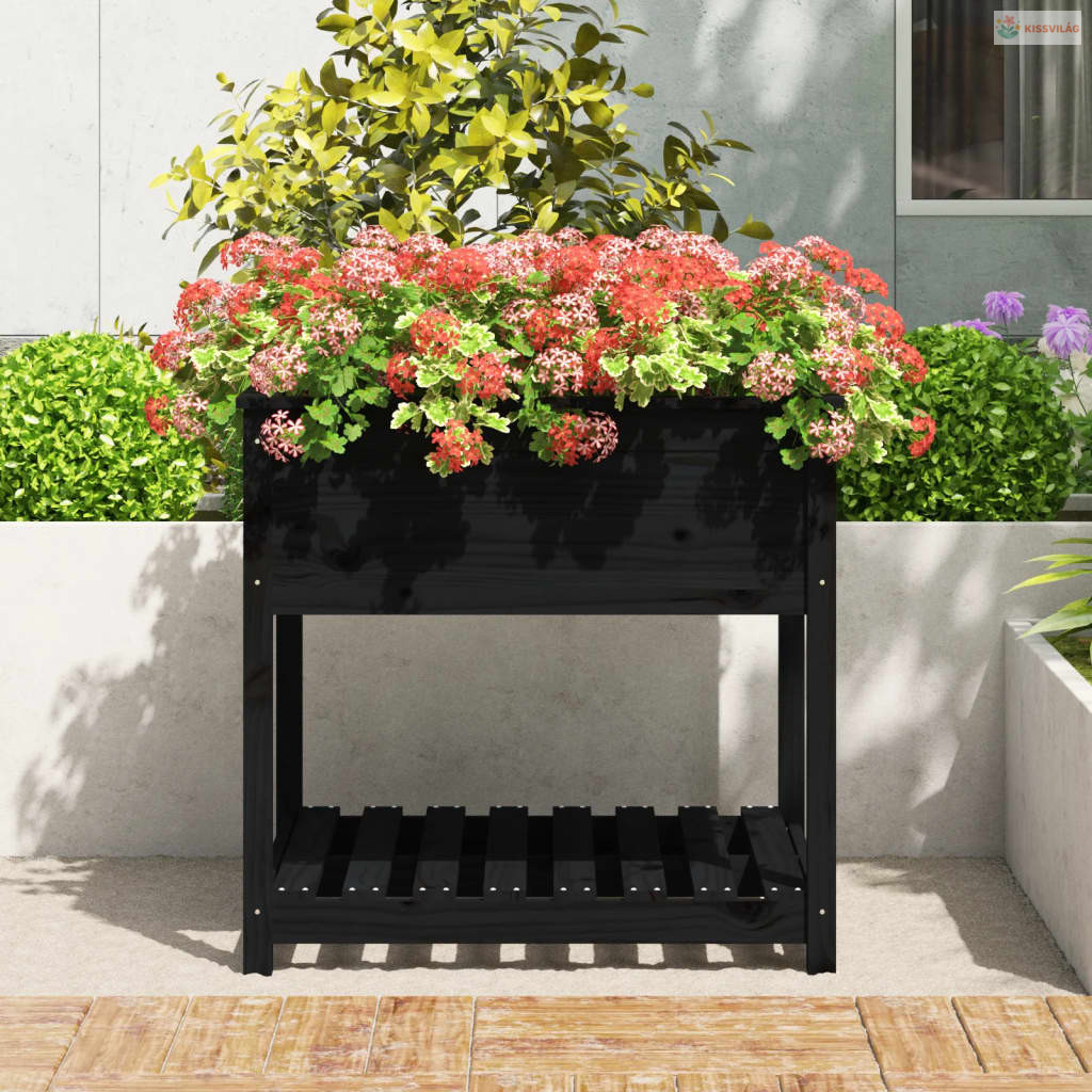 Fekete tömör fenyőfa növénytartó polccal 82,5x82,5x81 cm