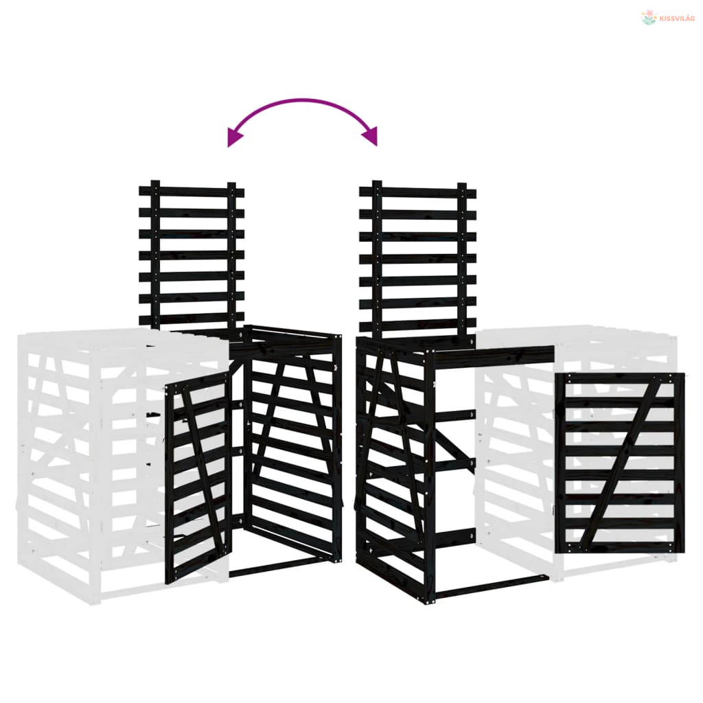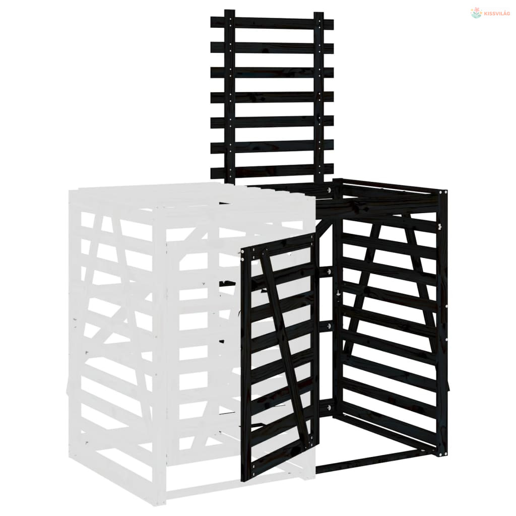 Fekete tömör fenyőfa szemeteskuka tároló hosszabbító