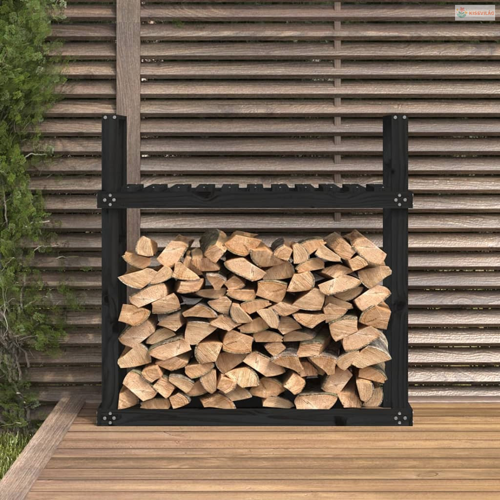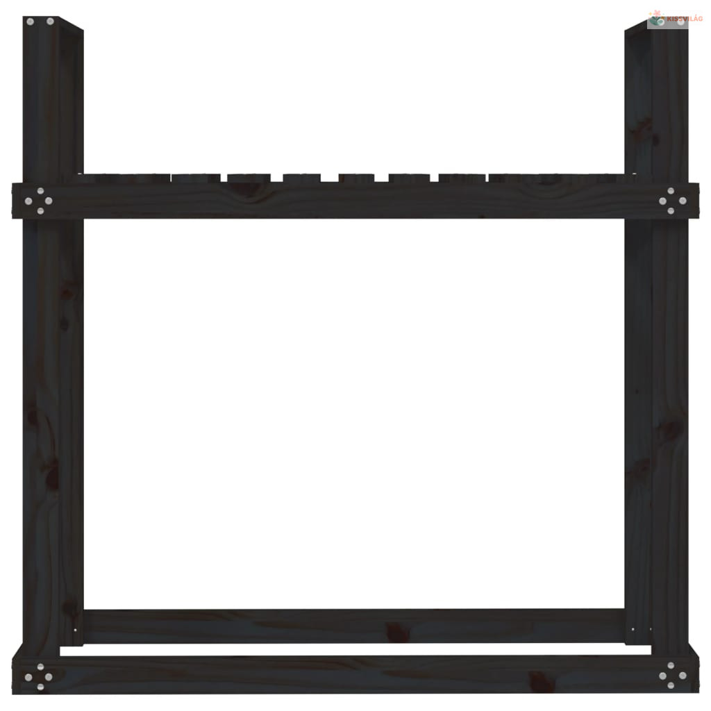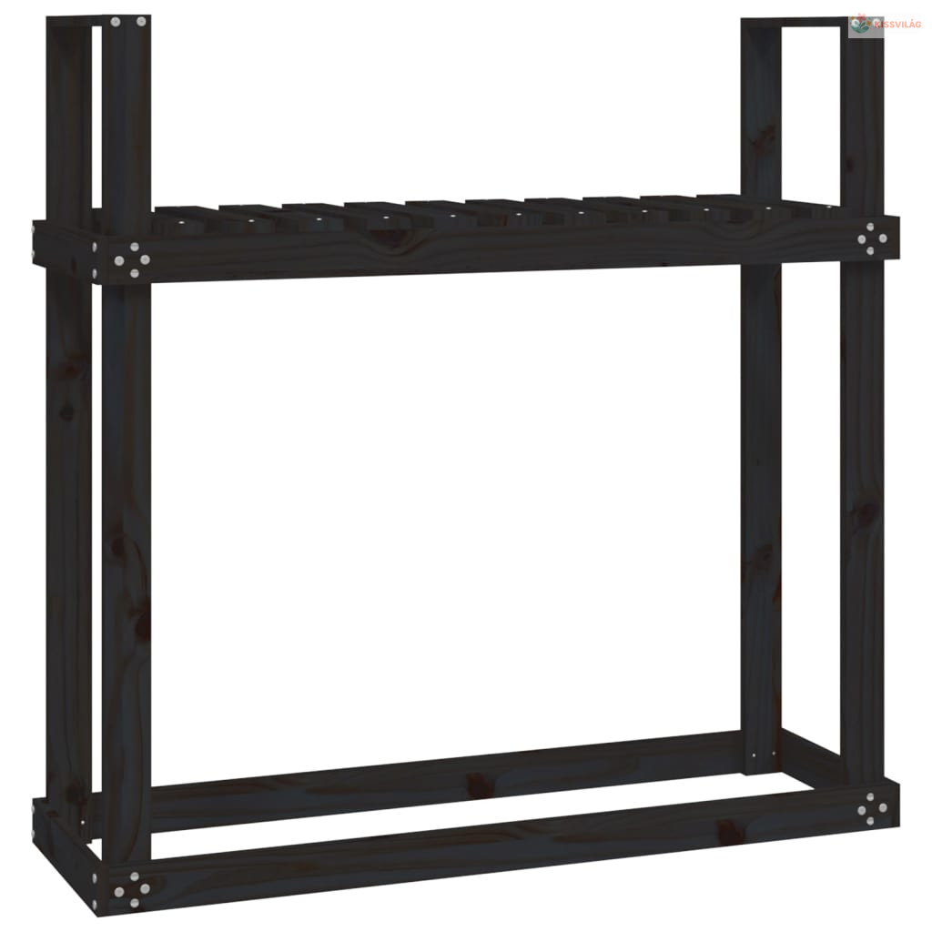 Fekete tömör fenyőfa tűzifatartó állvány 110x35x108,5 cm