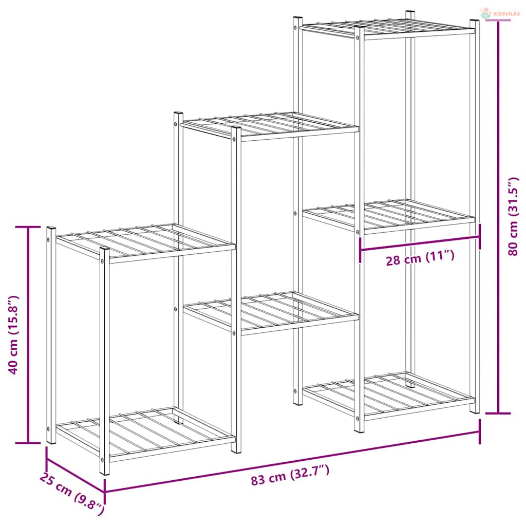 Fekete vas virágtartó állvány 83 x 25 x 80 cm