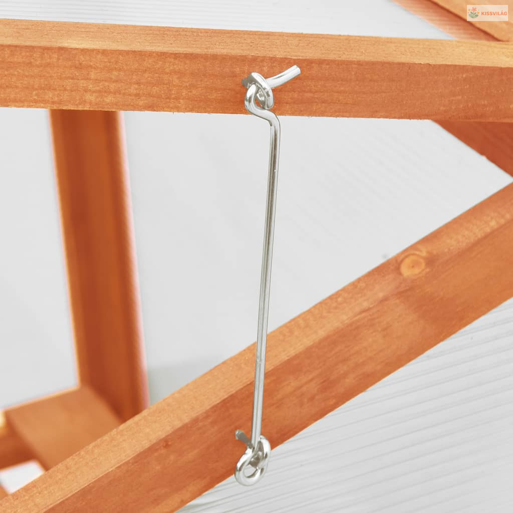 Ez a tágas fa melegház kültere remek kiegészítője lehet. Jelentős mennyiségű növény fér el benne és nagyszerű megoldást kínál arra, hogy megvédje növényeit a kinti hideg időtől.