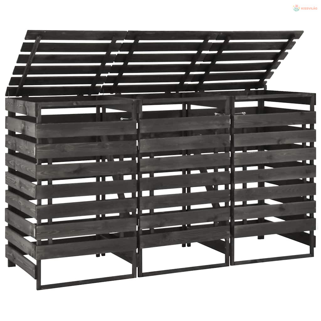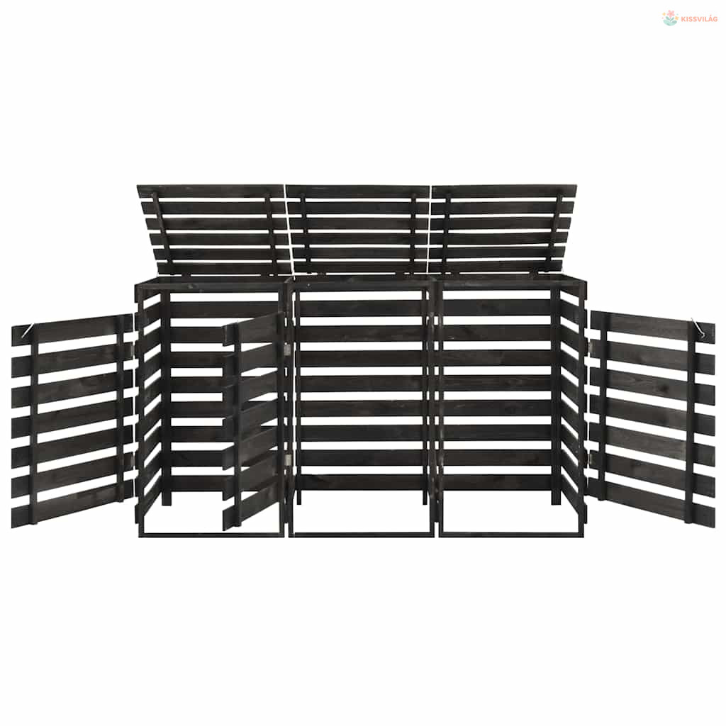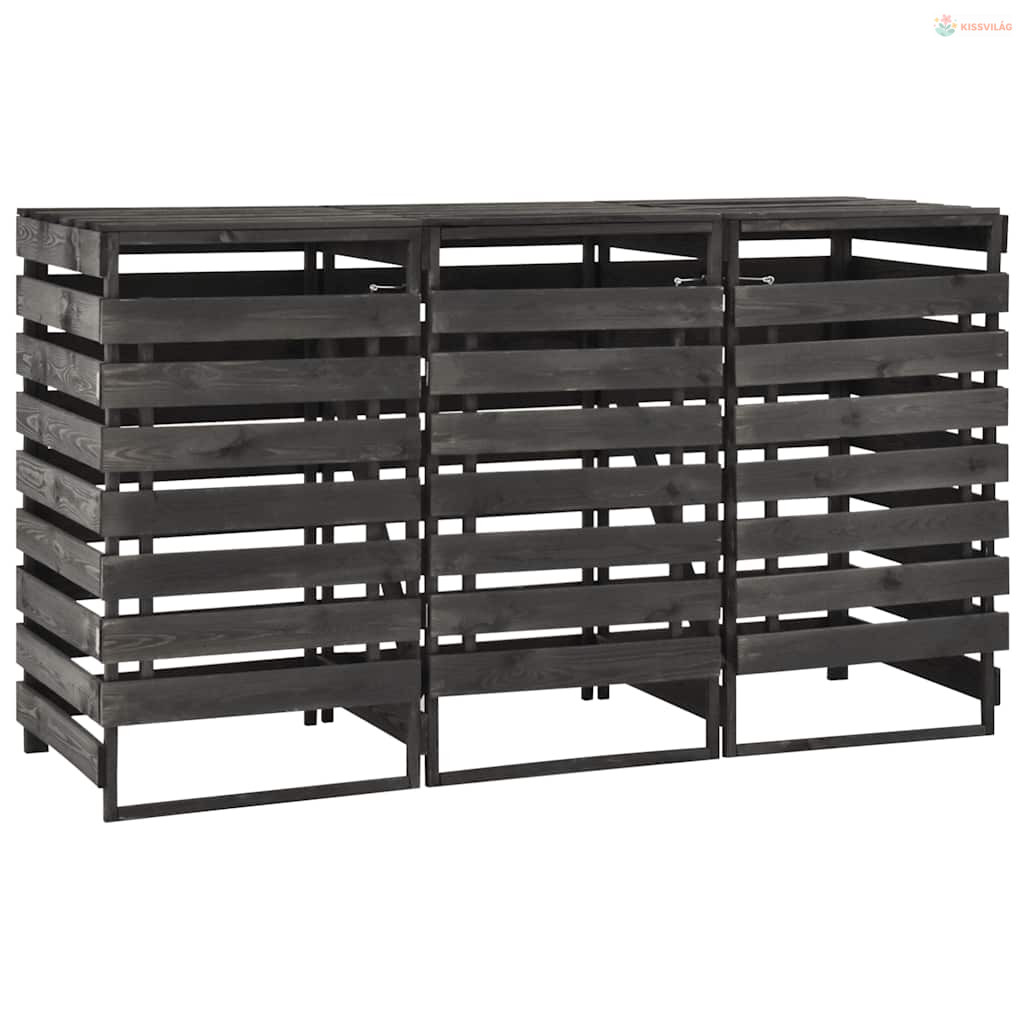 A tárolónak felnyitható fedelei vannak, így a szemét kidobásakor könnyen hozzá lehet férni a kukákhoz. Az elején található három külön nyitható ajtón keresztül a kukákat könnyű kivenni és kiüríteni. Az ajtók biztonságos zárhatósága érdekében az elülső részükön zárakkal vannak ellátva. A festett tömör fenyőfából készült kerekeskuka-tároló nagyon masszív, tartós és rothadásálló. A tárolóba 3 darab 240 literes kuka fér, és tökéletesen fog illeni a kertjébe.
