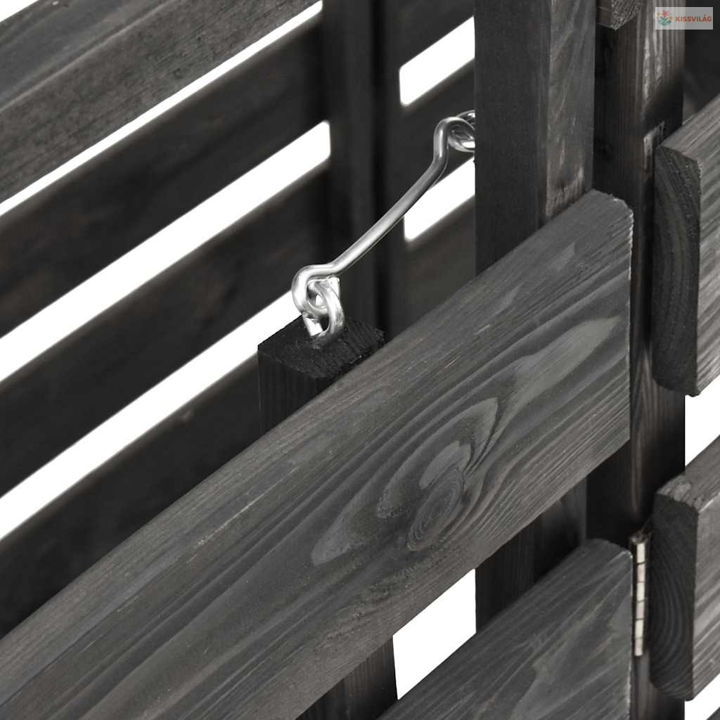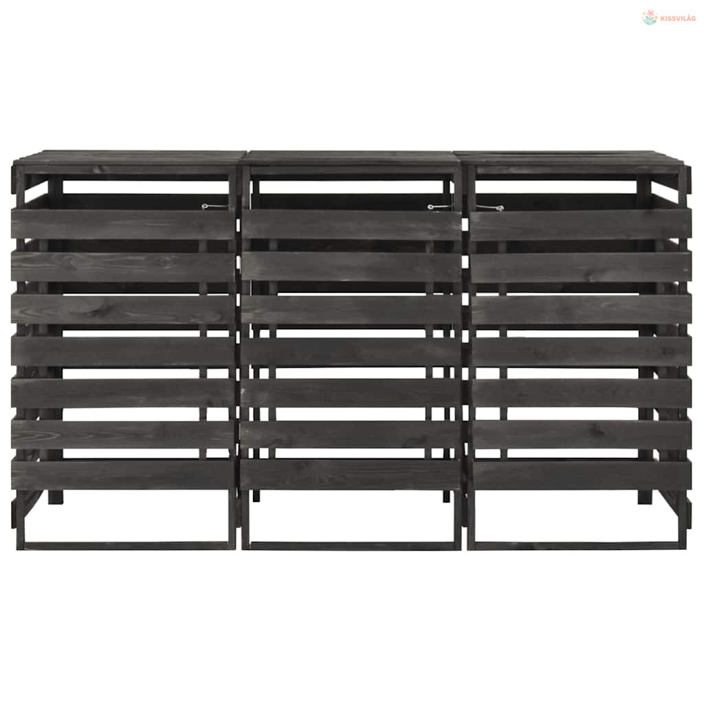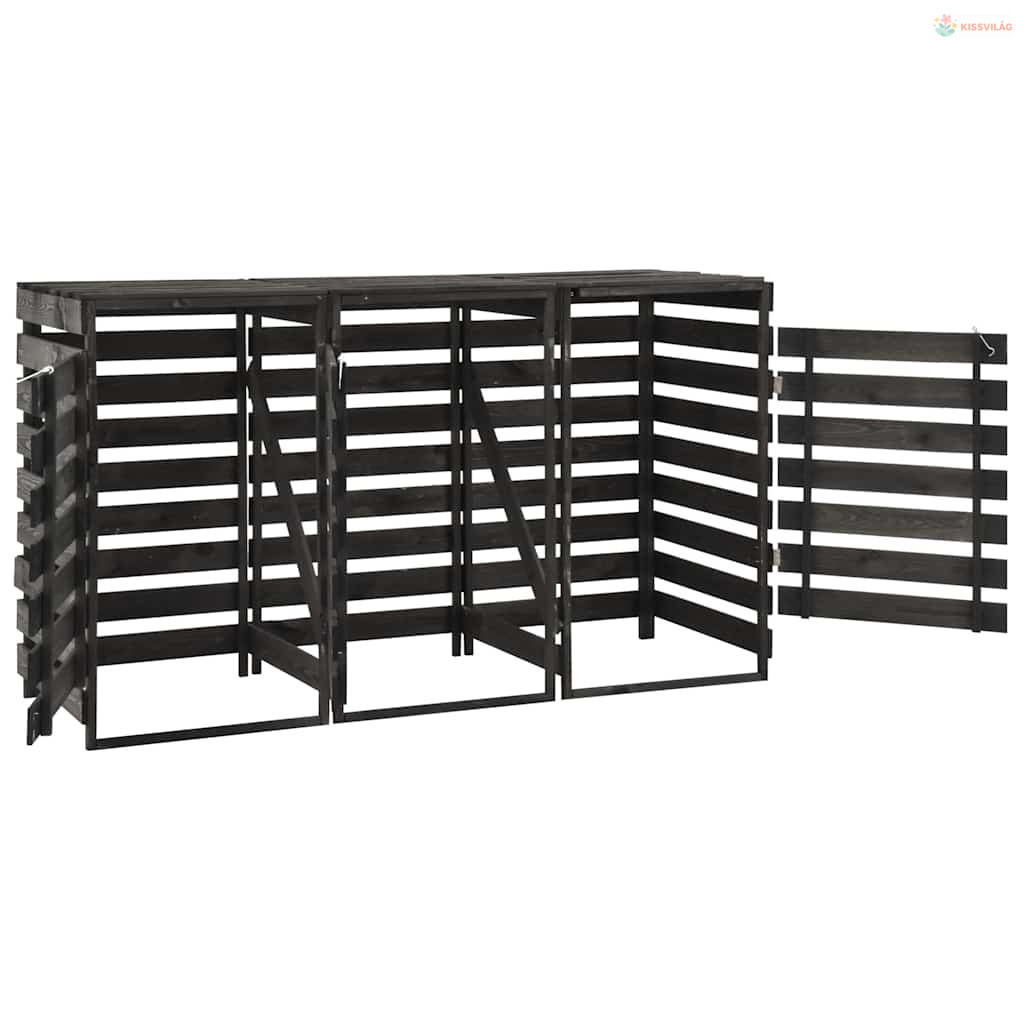 A tárolónak felnyitható fedelei vannak, így a szemét kidobásakor könnyen hozzá lehet férni a kukákhoz. Az elején található három külön nyitható ajtón keresztül a kukákat könnyű kivenni és kiüríteni. Az ajtók biztonságos zárhatósága érdekében az elülső részükön zárakkal vannak ellátva. A festett tömör fenyőfából készült kerekeskuka-tároló nagyon masszív, tartós és rothadásálló. A tárolóba 3 darab 240 literes kuka fér, és tökéletesen fog illeni a kertjébe.