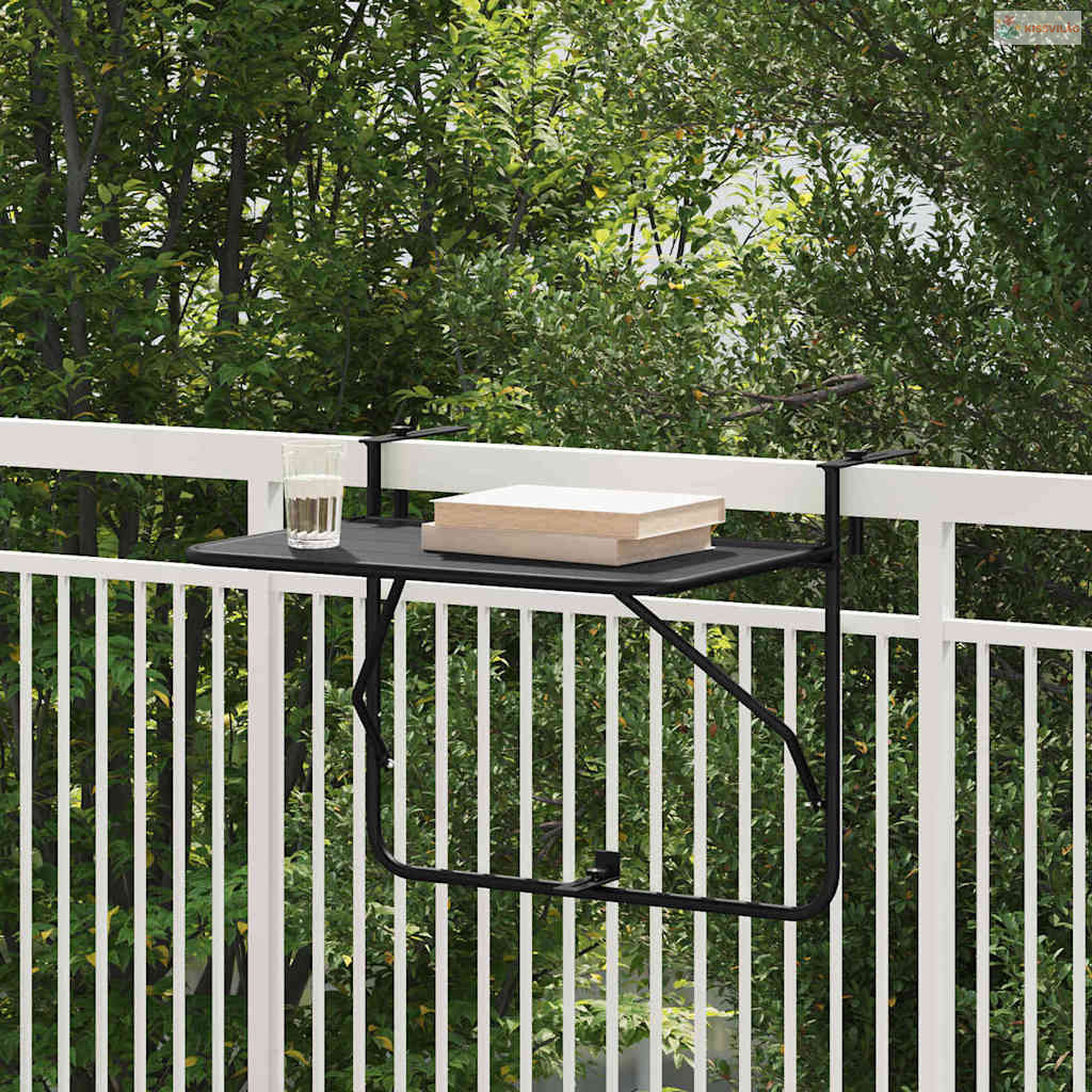 Függő erkélyasztal Fekete 60 x 39 x 65 cm Acél