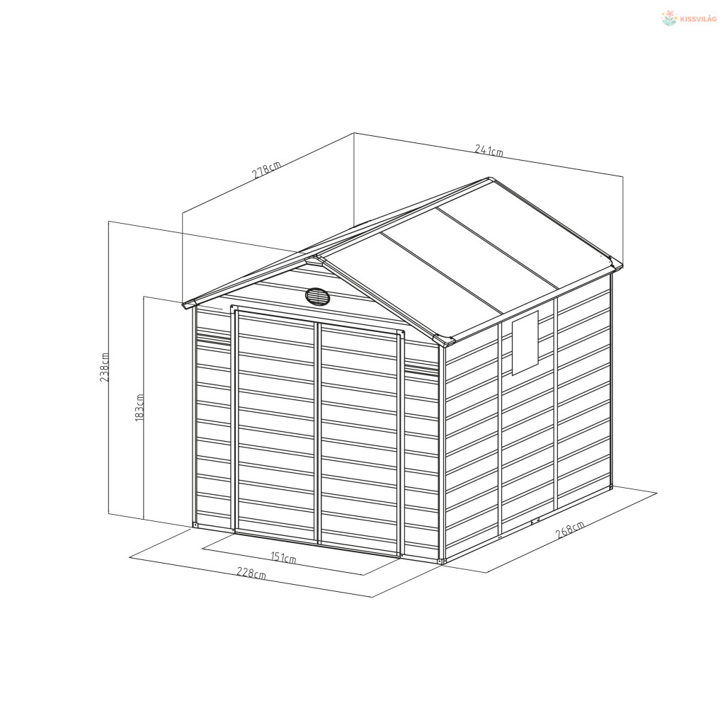 • Méretek: 241 x 238 x 278 cm