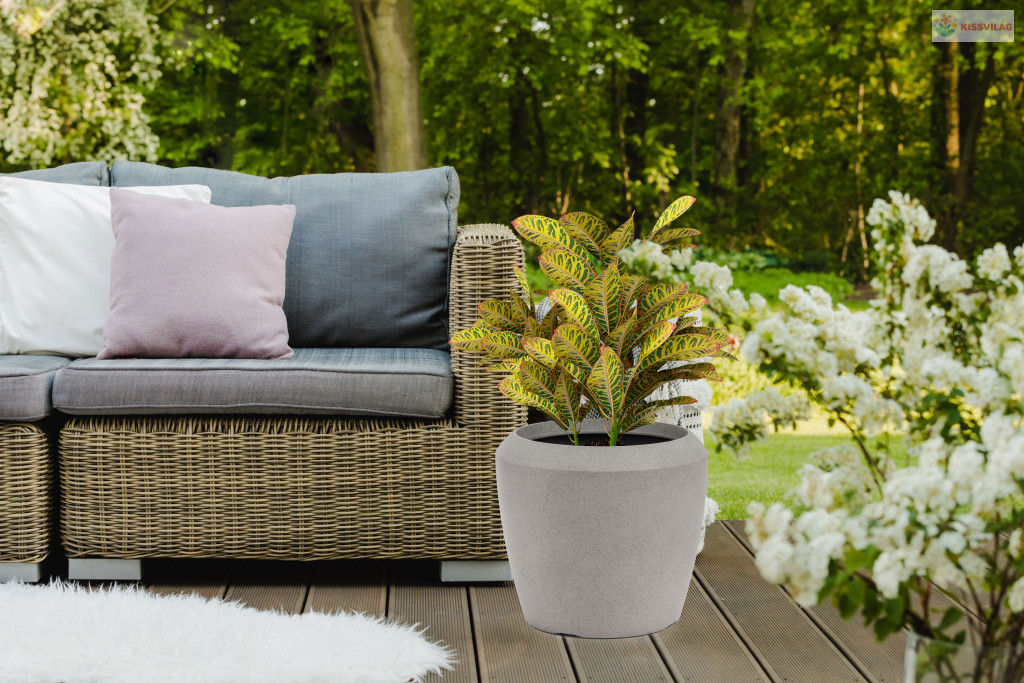 A virágcserép 0,6 cm vastag, UV-szűrős, kiváló minőségű műanyagból készült, így sem az elhelyezés, sem a használat terén nem szab korlátokat. A cserép könnyű, ugyanakkor kiemelkedően ellenálló az időjárás viszontagságaival szemben. Nem szükséges minden nyári eső előtt tető alá vinni. Sőt, az eső segít a tisztán tartásban is. Télen is kint hagyható a kertben – akár -35 °C-ig is fagyálló. Szükség esetén egyszerűen öblítse le vízzel, és újra tiszta lesz.