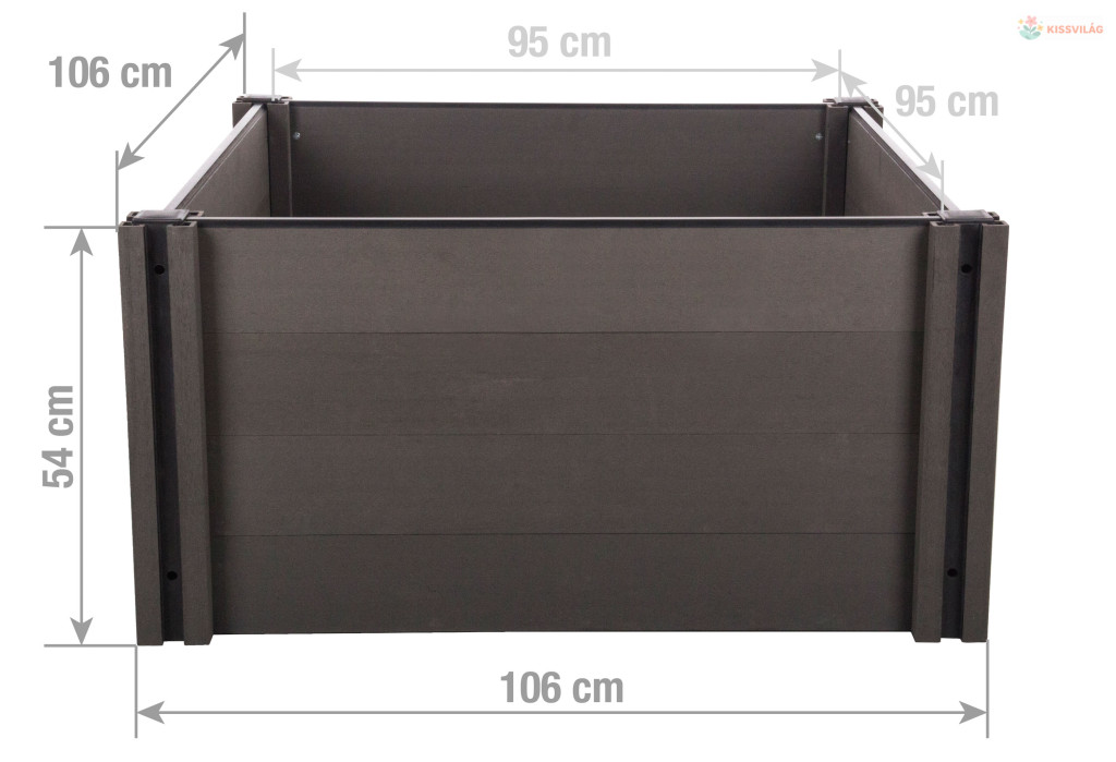 A G21 Crop magaságyás vetésre való területe 0,9 m2, a falak vastagsága 2,5 cm és a magassága 54 cm.