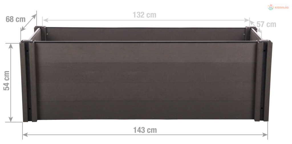 A G21 Crop magaságyás vetésre való területe 0,75 m2, a falak vastagsága 2,5 cm és a magassága 54 cm.