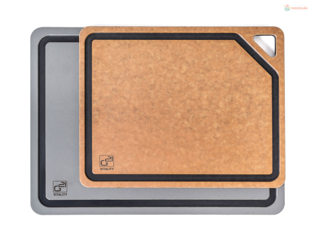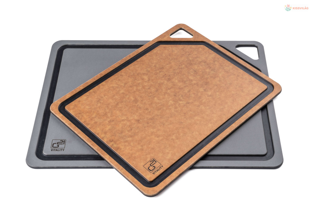 G21 EcoCut szeletelődeszka természetes cellulózból – 2 darabos készlet, grafit/barna színben