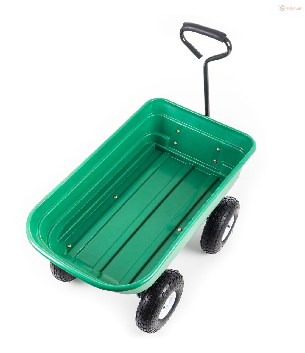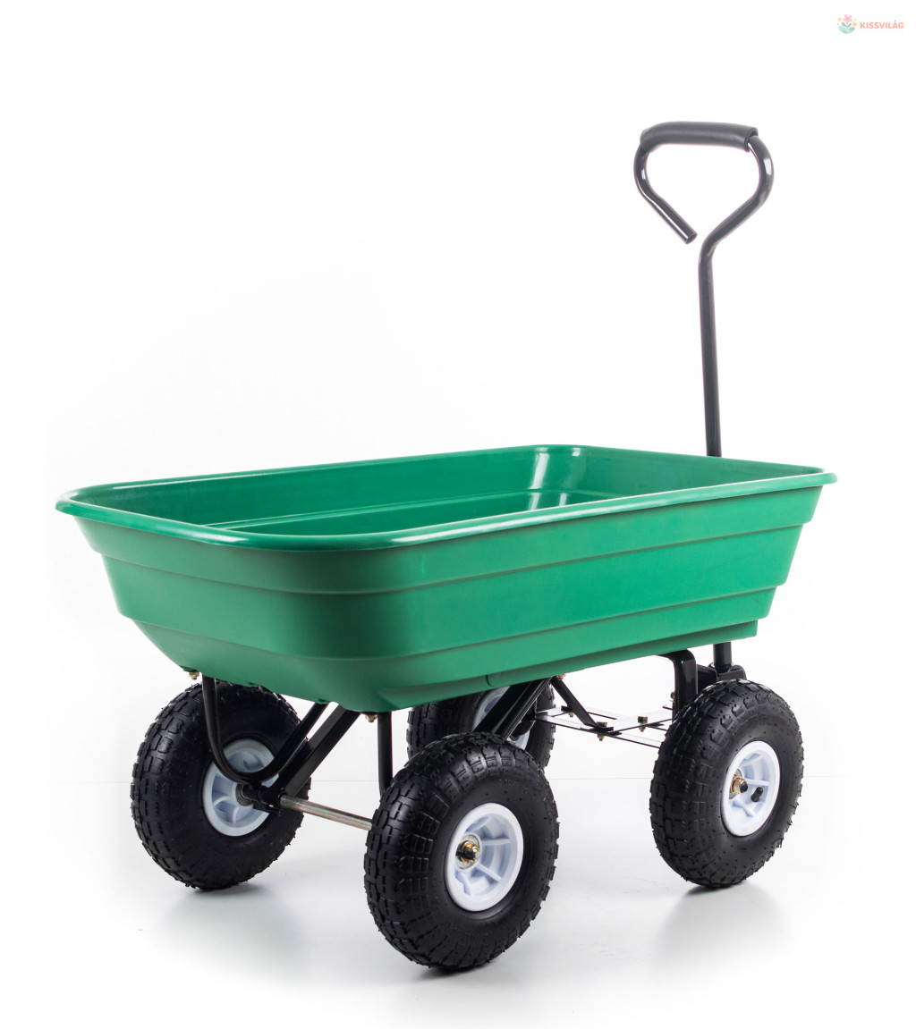 Szerezze be ezt a praktikus kiegészítőt a kertjébe, melysegítségével a nehezebb dolgok is könnyen szállíthatóak lesznek. Ez akerti kocsi nem csak kerti munkákhoz alkalmas, hanem akár építkezésekenis használható, hasznos segítséget nyújthat. Magas teherbíróképességének köszönhetően a cementes  zsákok, szerszámok és egyébanyagok is könnyen mozgathatóak.