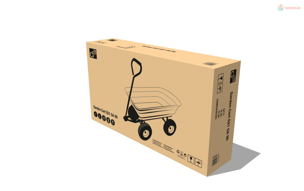 A G21 GA 90 kerti kocsi praktikus billenthető fogantyúval és 90 l-es teknővel rendelkezik, melynek teherbírása 130 kg. A két tengelyen 4 darab felfújható kereket helyeztünk el.