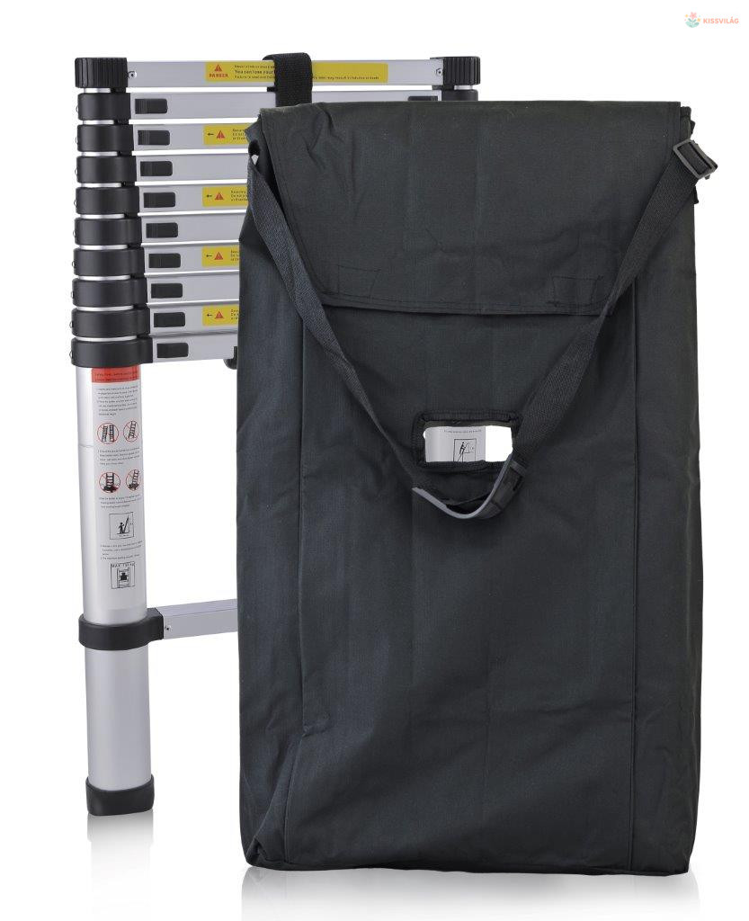 A kényelmes vállpántnak köszönhetően a létra súlya nagyob területre oszlódik el és a kezelése így sokkal könnyebb lesz. A teleszkópos létrára való táska közepén egy nyílás van létra gyors és kényelmes fogására.