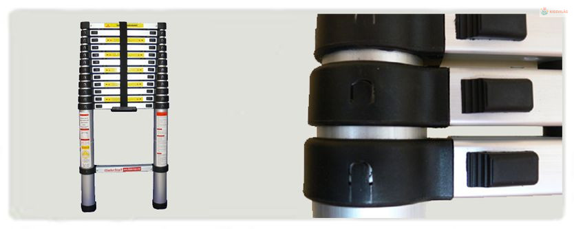 Amennyiben a műhelyében vagy a háztartásban nincs elég tároló hely, ez az összecsukható alumínium teleszkópos létra ideális választás az Ön számára!Összecsukott állapotban csak 0,67 m magas, tehát könnyen kezelhető, akarja akár áthelyezni vagy autóval szállítani. A szerkezete elemei, a létrafokok és a rögzítő zárak az ergonómia elvek szerint vannak kialakítva és támogatják az egyszerű és intuitív használatot.