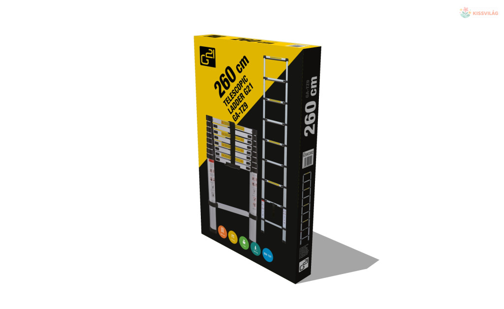 A G21 GA-TZ9-2,6M teleszkópos létra súlya 7 kg, maximális hossza 2,6 m és összecsukott állapotban 0,74 m magas. Szakemberek számára volt tervezve és elegendően merev és ellenálló a szerkezete a duralprofil rendszernek köszönhetően. Teherbírása 150 kg.