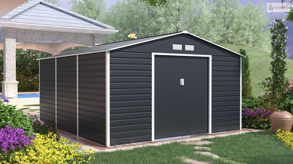 A modern dizájnnak köszönhetően ezek a kerti tárolók minden kertbenjól mutatnak. A kerti tároló bejárati ajtaja elegendően széles, ezért a tárolóba kényelmesen elhelyezheti a szerszámait, kerti talicskáját és a kültéri bútort is.