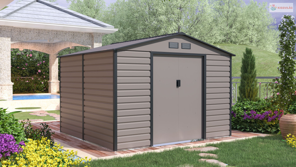 A modern dizájnnak köszönhetően ezek a kerti tárolók minden kertbenjól mutatnak. A kerti tároló bejárati ajtaja elegendően széles, ezért a tárolóba kényelmesen elhelyezheti a szerszámait, kerti talicskáját és a kültéri bútort is.