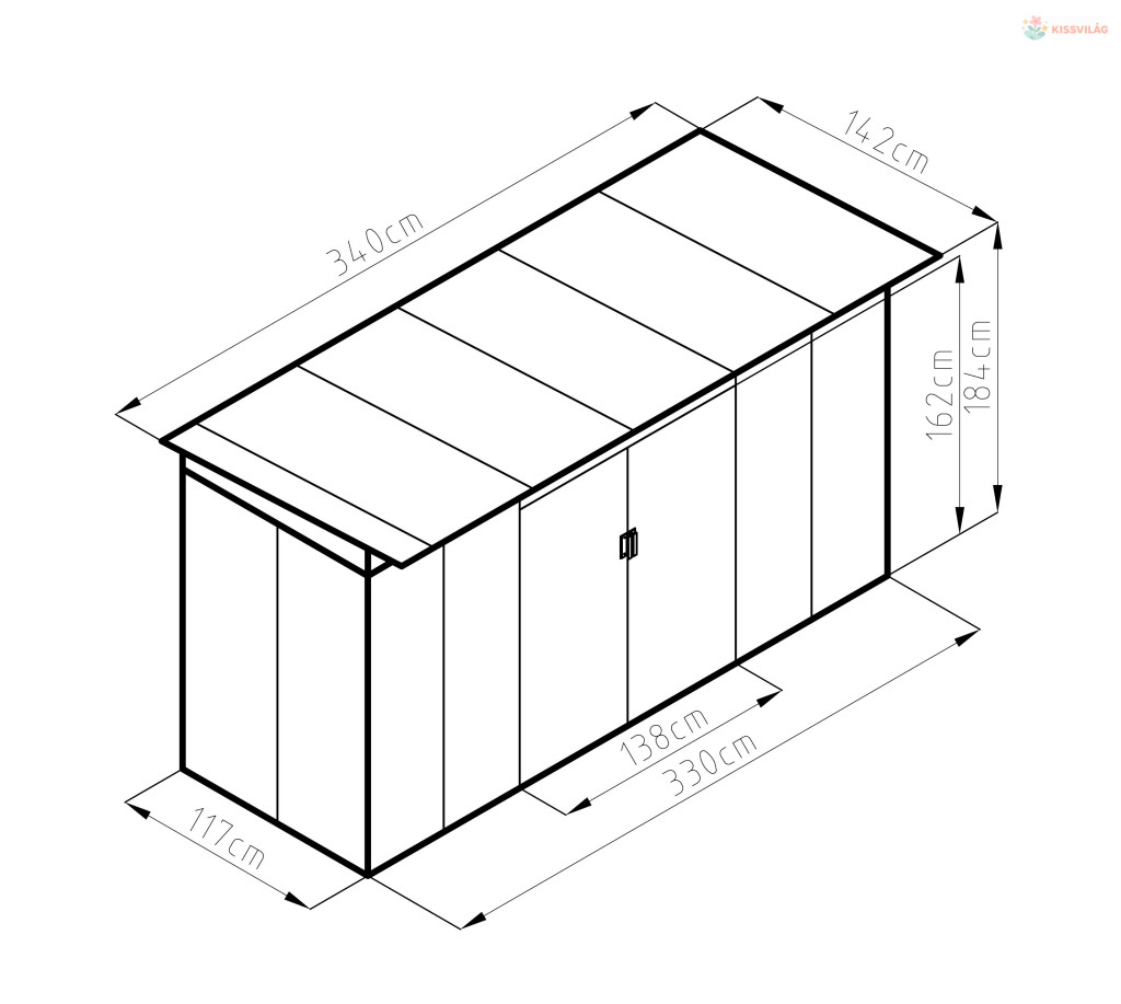 • Méretek tető nélkül: 330 x 117 x 184 cm