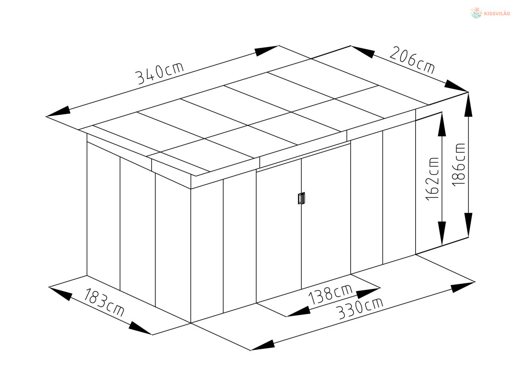 • Méretek tető nélkül: 330 x 183 x 186 cm