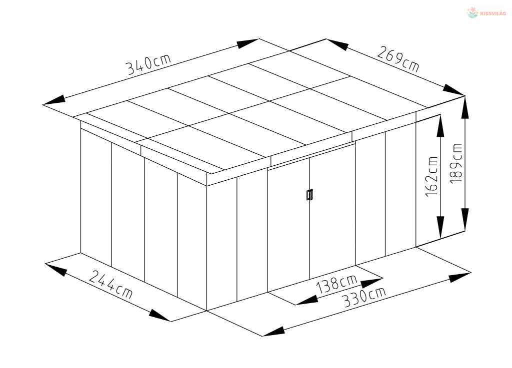 • Külső méretek - a tetővel (sz x h x ma): 340 x 269 x 189 cm