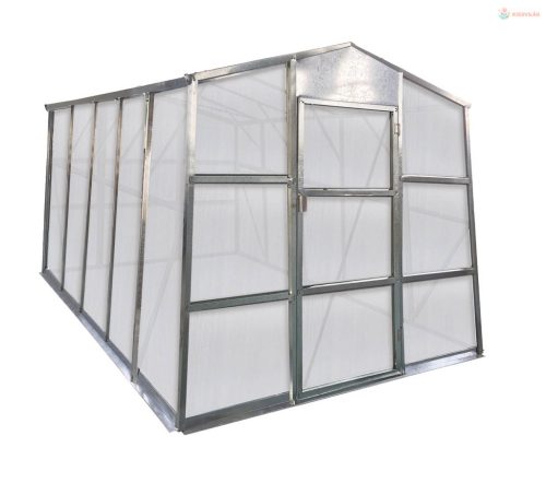 A G21 kerti üvegház stabil szerkezettel rendelkezikminőségi horganyzott profilokból, amelyek magasabb erősséget és ellenállást biztosítanak. A lemezek üreges 4 mm-es polikarbonátból készülnek. A polikarbonát élettartamát meghosszabbítja az UV sugárzás, amellyel el vannak látva a lemezek