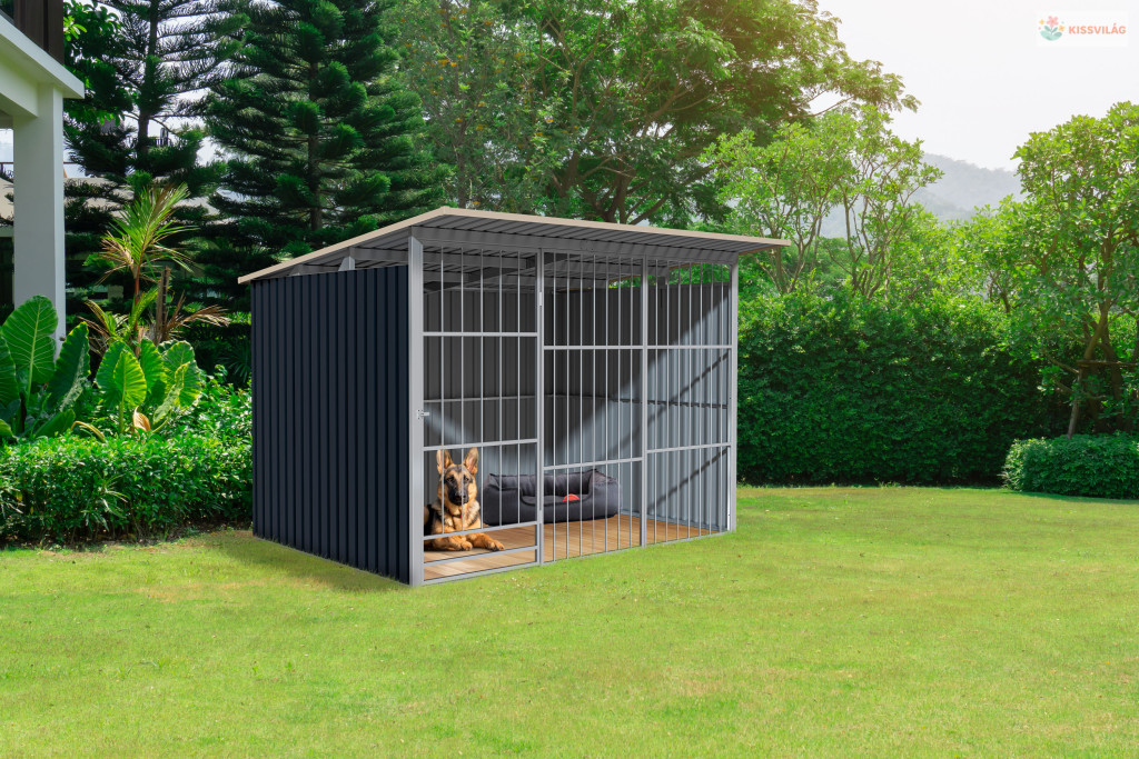 • A lejtős tető védi a kutyát az esőtől