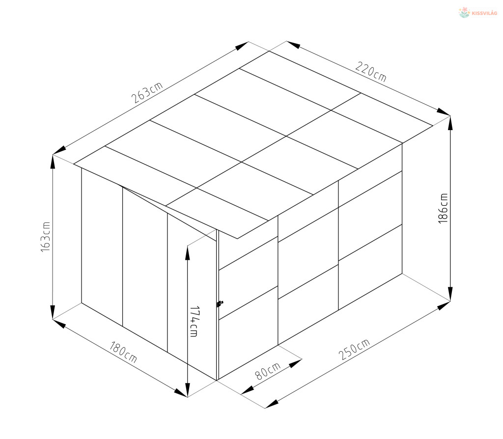 • Méretek - külső (szélesség x magasságx mélység): 260 x 186 x 220 cm