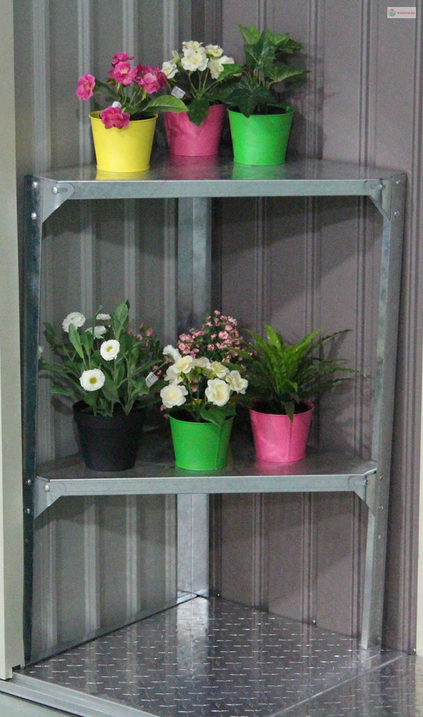 A G21 sarokpolc stabil, karbantartásmentes és esztétikus megoldás a szerszámok és egyéb kiegészítők tárolására az üvegházban. Minőségi horganyzott acéllemezből készül, amely teljesen ellenálló és karbantartásmentes.