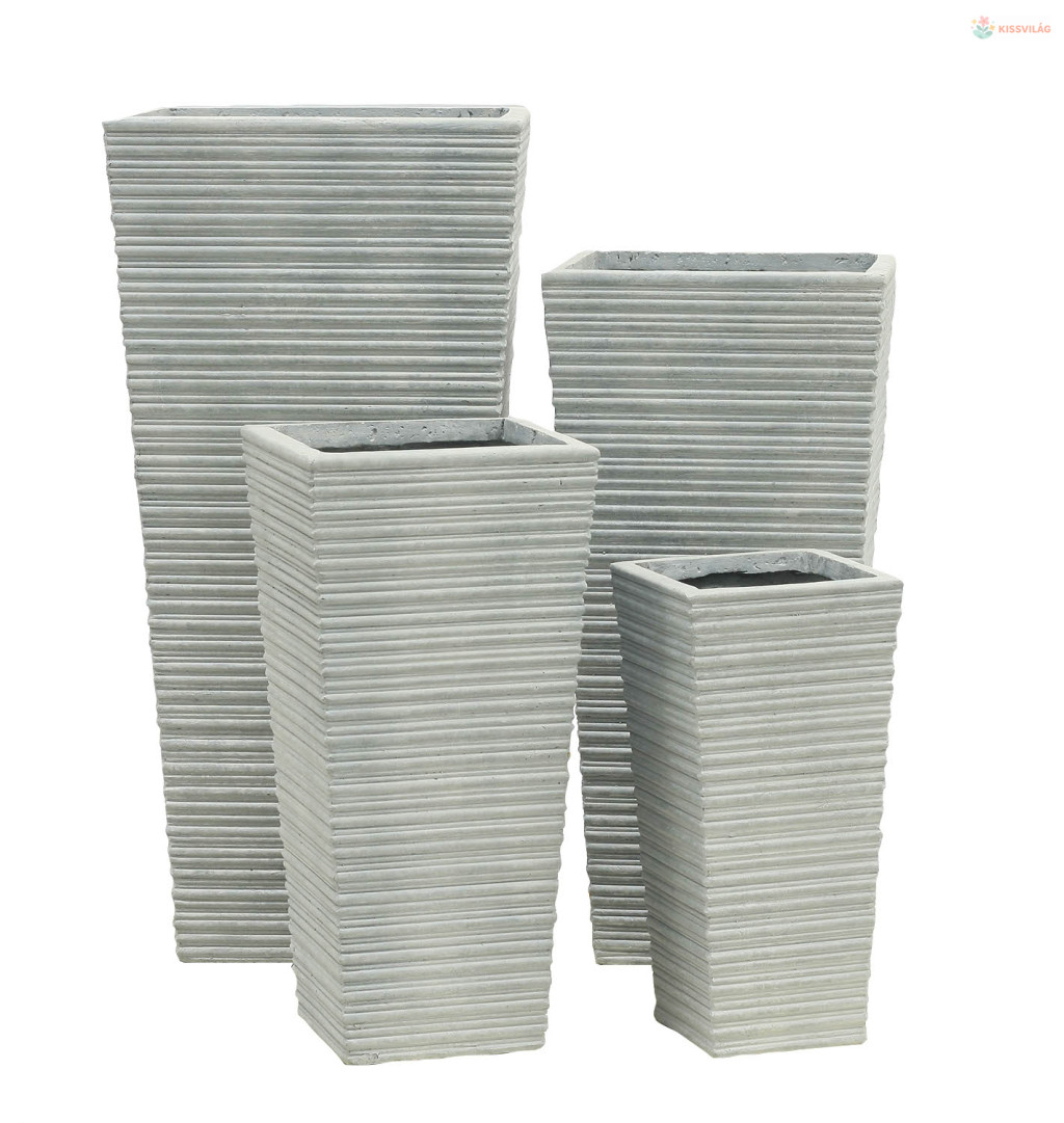 A G21 virágcserép a Stone Linea termékcsaládból 46 cm magas, 24 cm mély és 4 kg a súlya. A szürke virágcserép, amely kitűnik a kő, modern szögletes dizájnjával, kézzel készül magas minőségű üvegszálból. Alkalmas kültéri használatra.