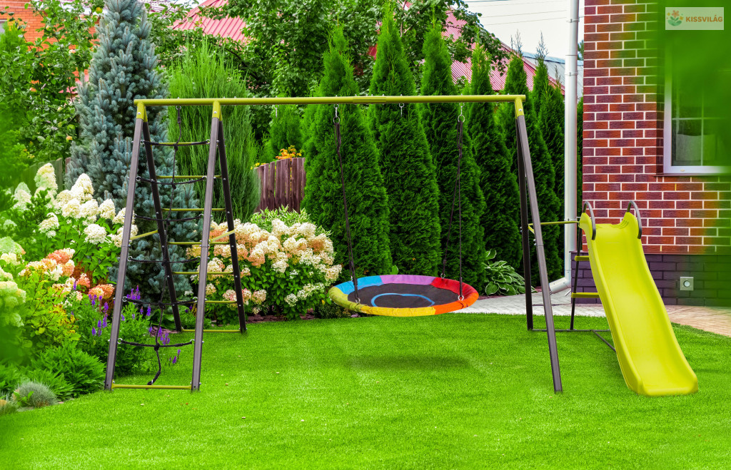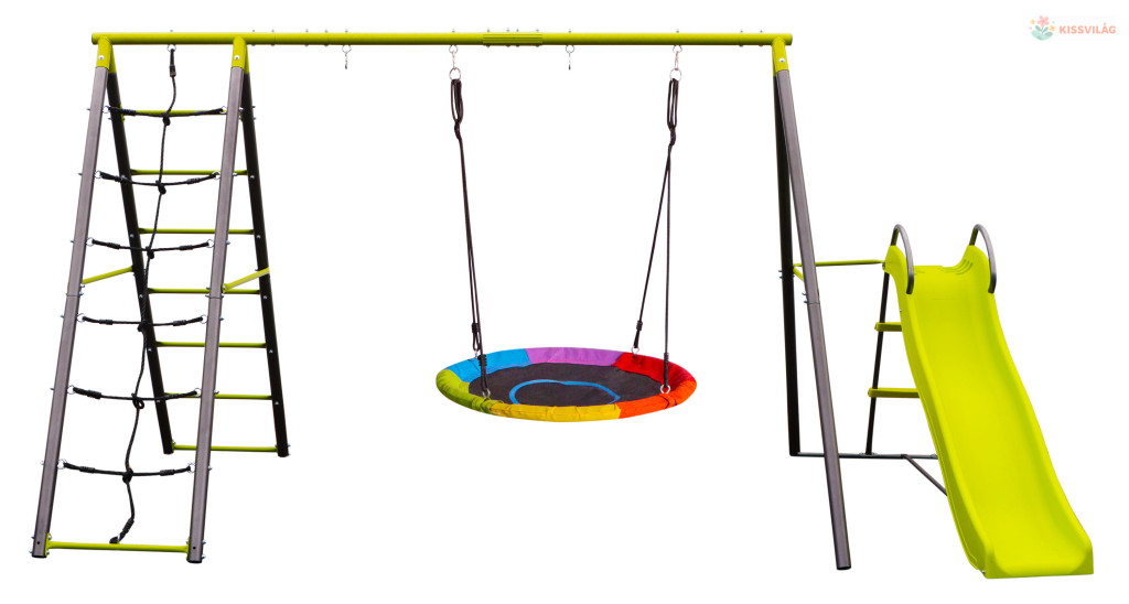 Hogyan biztosíthat a gyerekeknek rengeteg szórakoztató és egyben biztonságos játékot? Szerezzen be egy kerti szettet hintakarikával, mászóhálóval és csúszdával. A hintakarikán a gyerekek kényelmesen hintázhatnak, a csúszda szórakoztatja őket és javítja az állóképességet, a mászófal pedig arra ösztönzi őket, hogy valami újat próbáljanak ki.