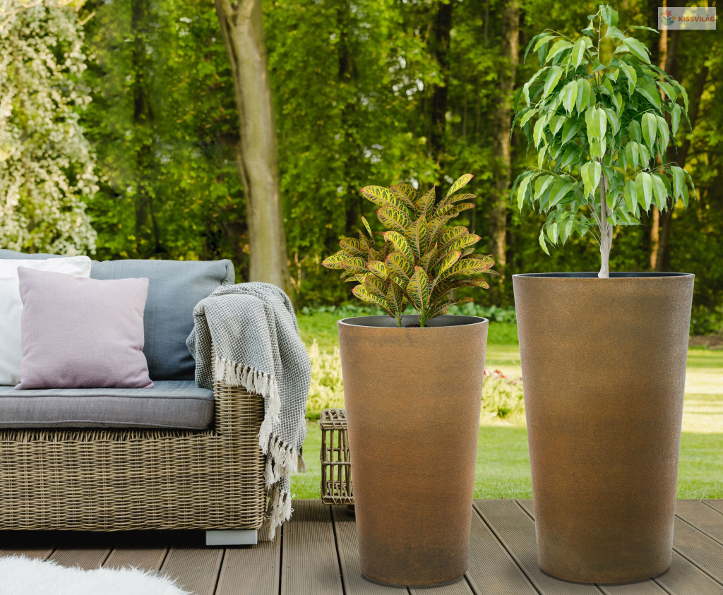 Az ültetőgépminőségi, 1 cm vastag műanyagból készült, ami sem az elhelyezés, sem a felhasználás tekintetében nem korlátoz. A virágcserép könnyű, ugyanakkor kivételesenellenálló az időjárással szemben. Nem kell minden nyári záporral vagy erős széllel megtisztítani a virágokat a tető alatt. Éppen ellenkezőleg, a nyári eső segít a karbantartásban. A virágcserepet télen is a kertben hagyhatod --35 °C-ig fagyálló.Ha a virágcserép falai koszosak, csaköblítsd le vízzel és ismét olyan jók, mint az új.