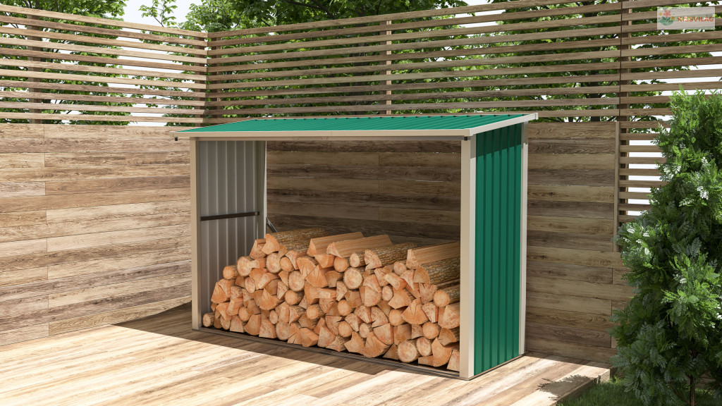 G21 WOH 335 tüzifa tároló - 242 x 89 cm, zöld