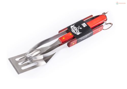 A készlet tartalmaz minden eszközt a gond nélküli grillezéshez. A készlet része egy húsforgató, villa és csipesz. A 43 cm hosszú eszközök biztosítják, hogy grillezés közben nem fogják Önt megégetni a lángok és a húsból fröcsögő olaj.