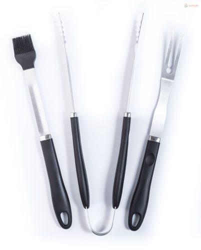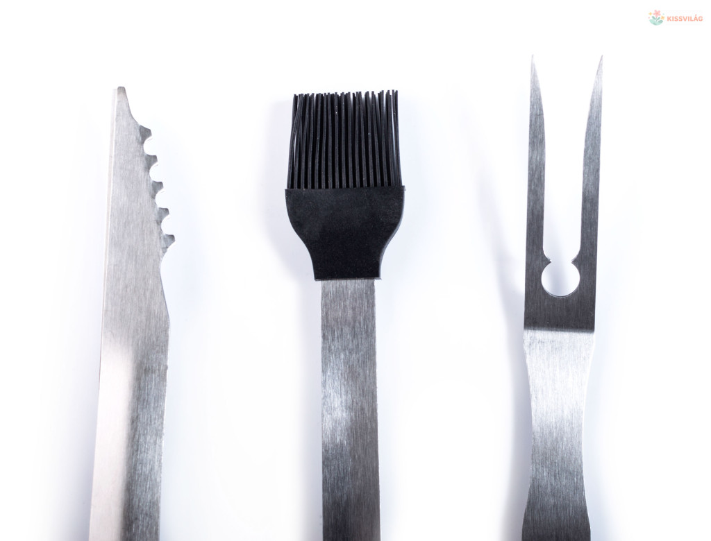 A 3 db-os G21 rozsdamentes acél grillező eszköz kenőecsetet, grillvillát és grillcsipeszt tartalmaz a készletben. A segédeszközök hossza 41 és 45 cm.