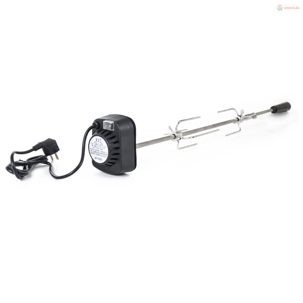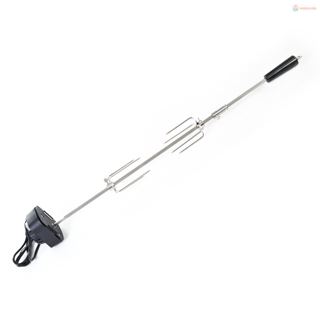 Az egyik oldalán a nyárs levehető műanyag tartóval van ellátva, amelyen egy praktikus szem van a rögzítésre. A másik oldalán találhatóa műanyag tokban lévő motor, amelyen a ki-/bekapcsolás gomb van elhelyezve. A 230 V teljesítményű motort egyszerűen csatlakoztathatja az áramkörre a kb. 125 cm hosszú kábel segítségével. A motoros nyárs gyorsasága 2 fordulat / perc, hogy a készített étel ne égjen le és egyenletesen süljön.