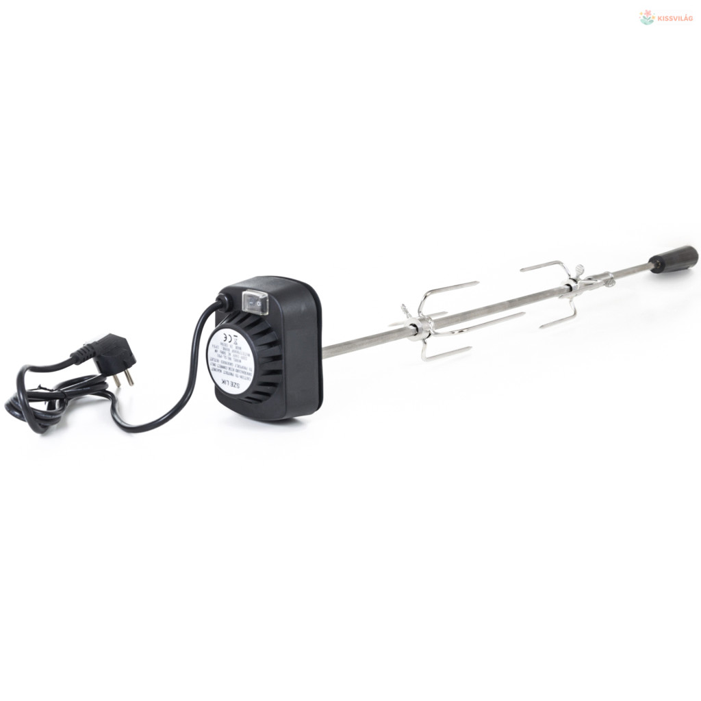 Az egyik oldalán a nyárs levehető műanyag tartóval van ellátva, amelyen egy praktikus szem van a rögzítésre. A másik oldalán találhatóa műanyag tokban lévő motor, amelyen a ki-/bekapcsolás gomb van elhelyezve. A 230 V teljesítményű motort egyszerűen csatlakoztathatja az áramkörre a kb. 125 cm hosszú kábel segítségével. A motoros nyárs gyorsasága 2 fordulat / perc, hogy a készített étel ne égjen le és egyenletesen süljön.