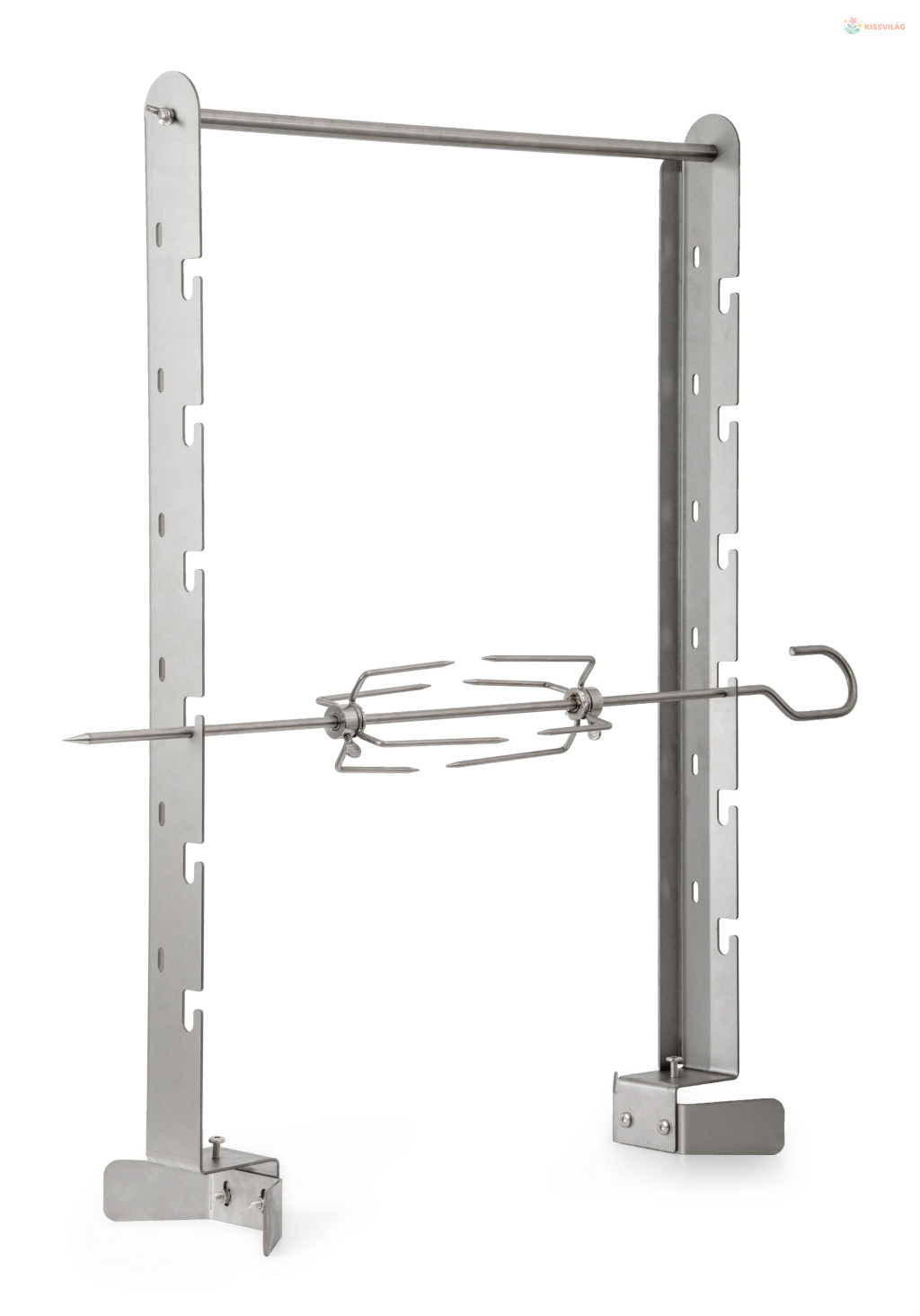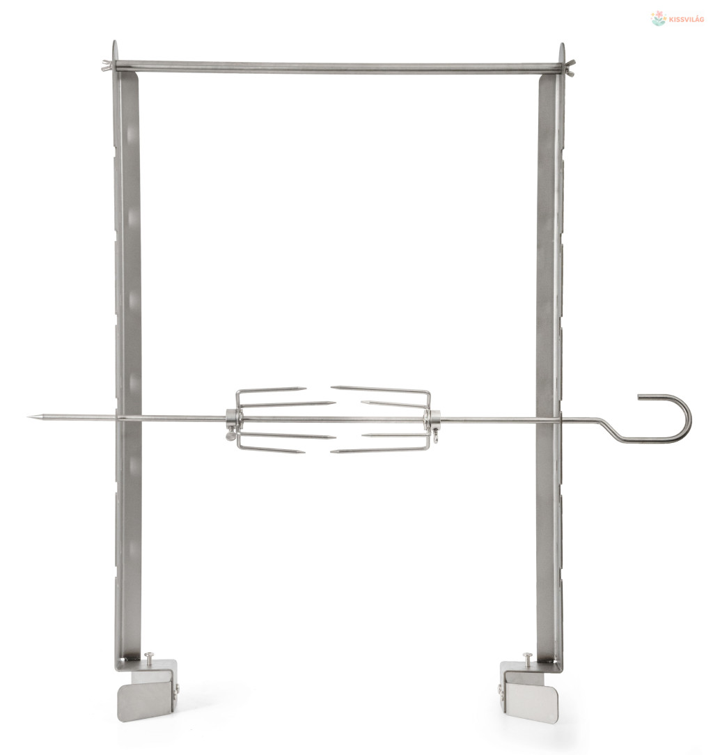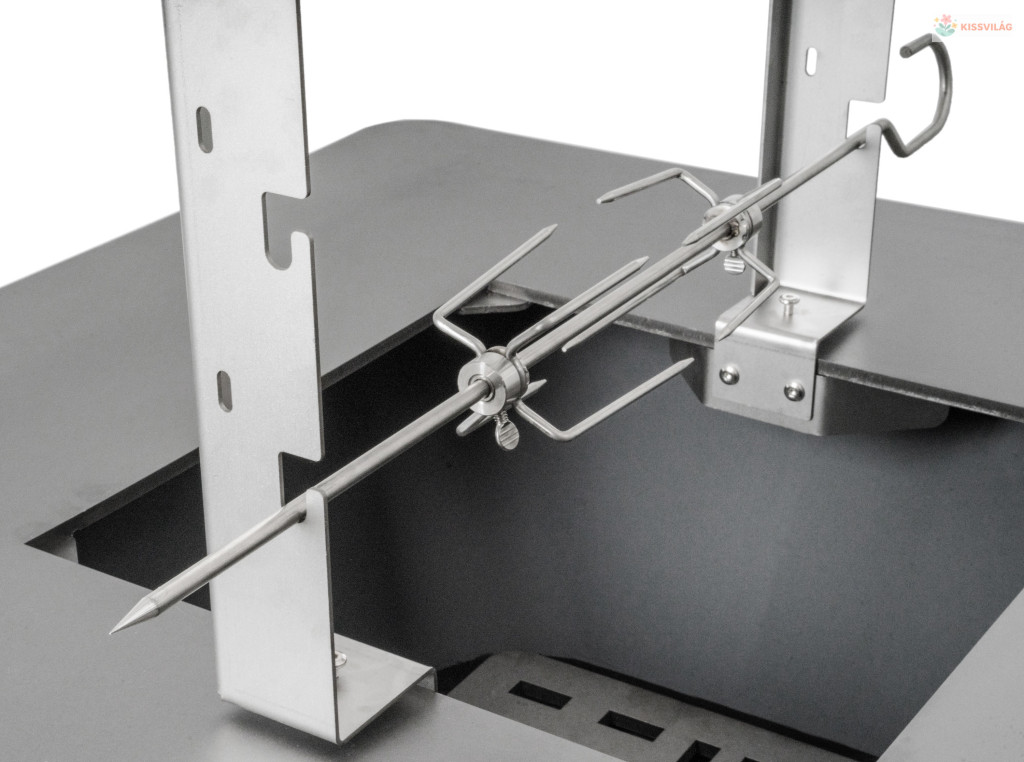 Szereted a grillezett csirkét és más, nyárson készült ételeket? Ennek a praktikus grillkészletnek, 6 állású állványnak és a vízforraló akasztására alkalmas tartónak köszönhetően jelentősen kibővíti grillje lehetőségeit.