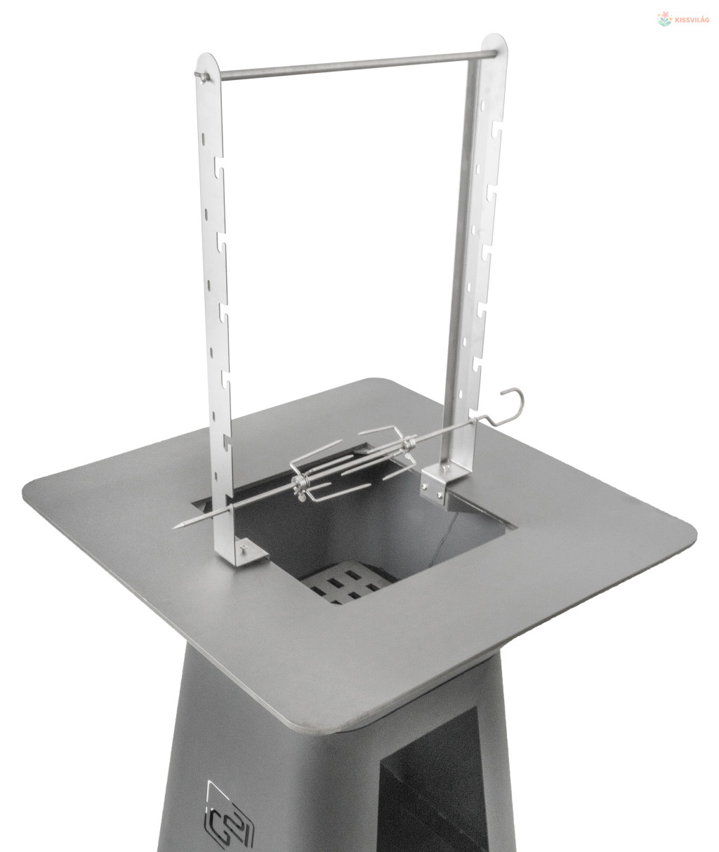 Praktikus készlet - kiváló minőségű rozsdamentes acélból készült grilltű és állvány 6 pozícióval a grilltű elhelyezéséhez vagy a vízforraló felakasztásának lehetőségével.