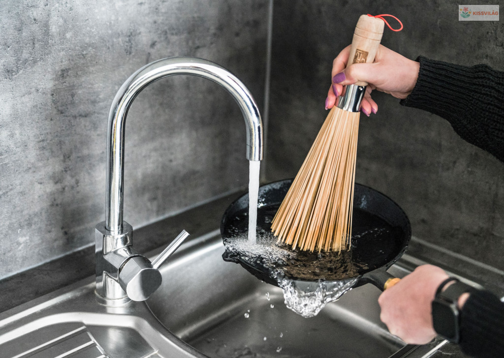 Speciális bambuszkefe öntöttvas edények, sütőlemezek, acél edények, serpenyők stb. tisztítására. Hossza 31 cm, könnyű karbantartás.