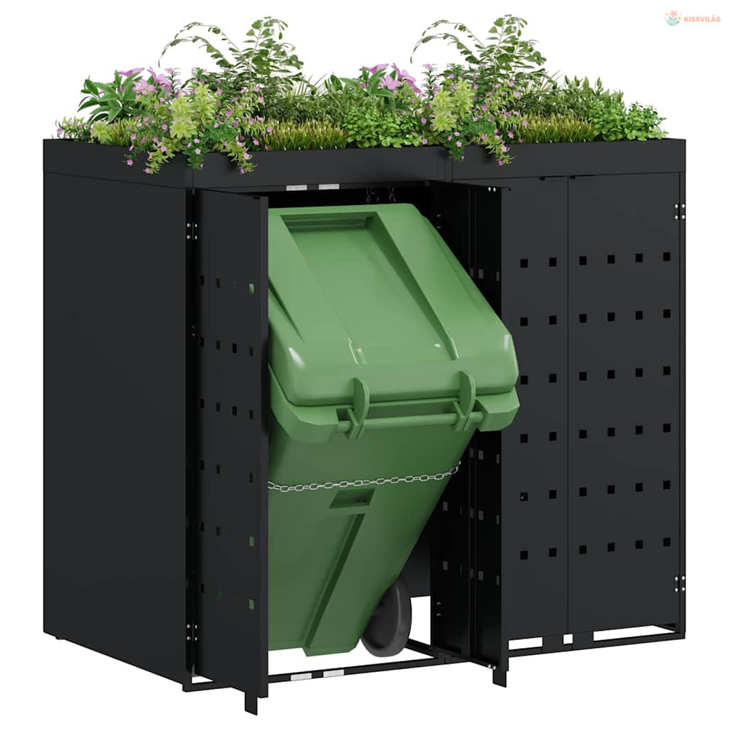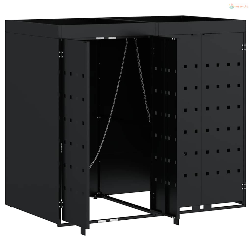 Gurulós kuka tároló 2 kukához Fekete 136 x 77,5 x 121,5 cm
