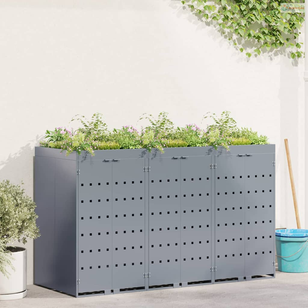 Ez a Kerékpár Tároló, Virágágyással Modern egy elegáns megoldás a rendezett kültéri terekhez, kifejezetten kertekhez és teraszokhoz tervezve. Tisztavonalú formája és minimalista dizájnja tökéletesen illik a modern stílushoz, így szebbé teszi a kültéri életteret. A tároló funkcionálisan és elegánsan rejti el az unszimpatikus kukákat, így a kültéri tered mindig tiszta és rendezett marad. Ezenfelül a virágágyás teteje lehetővé teszi, hogy a kedvenc növényeidet termeszd, így egy kis természetet vihetsz a teredbe.