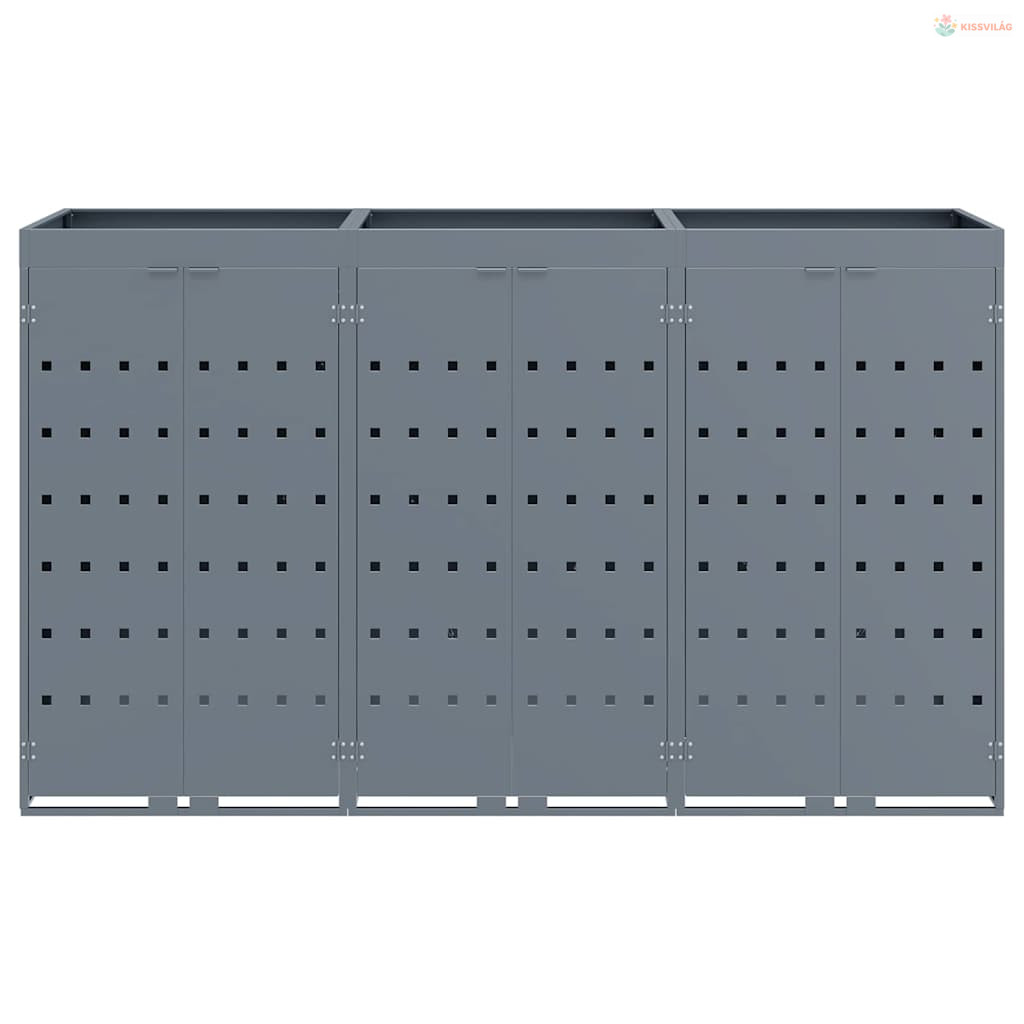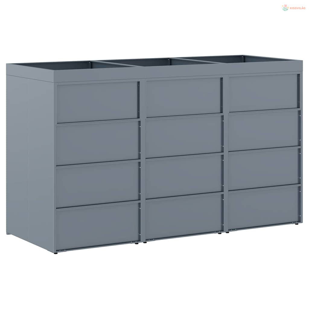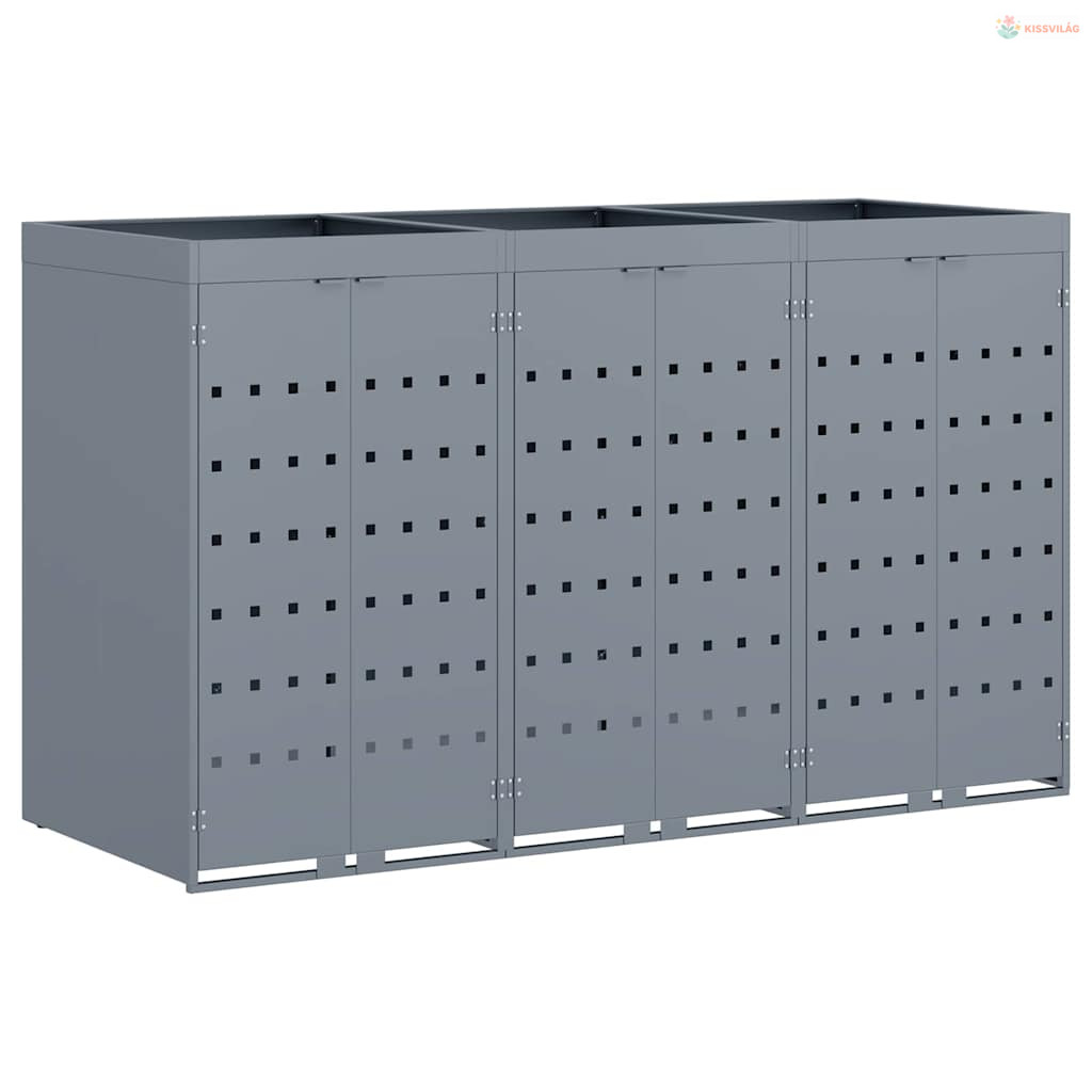 Gurulós kuka tároló 3 kukához Világosszürke Porfestett acél