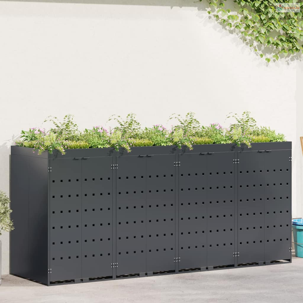 Gurulós kuka tároló 4 kukához Antracit 272 x 77,5 x 121,5 cm